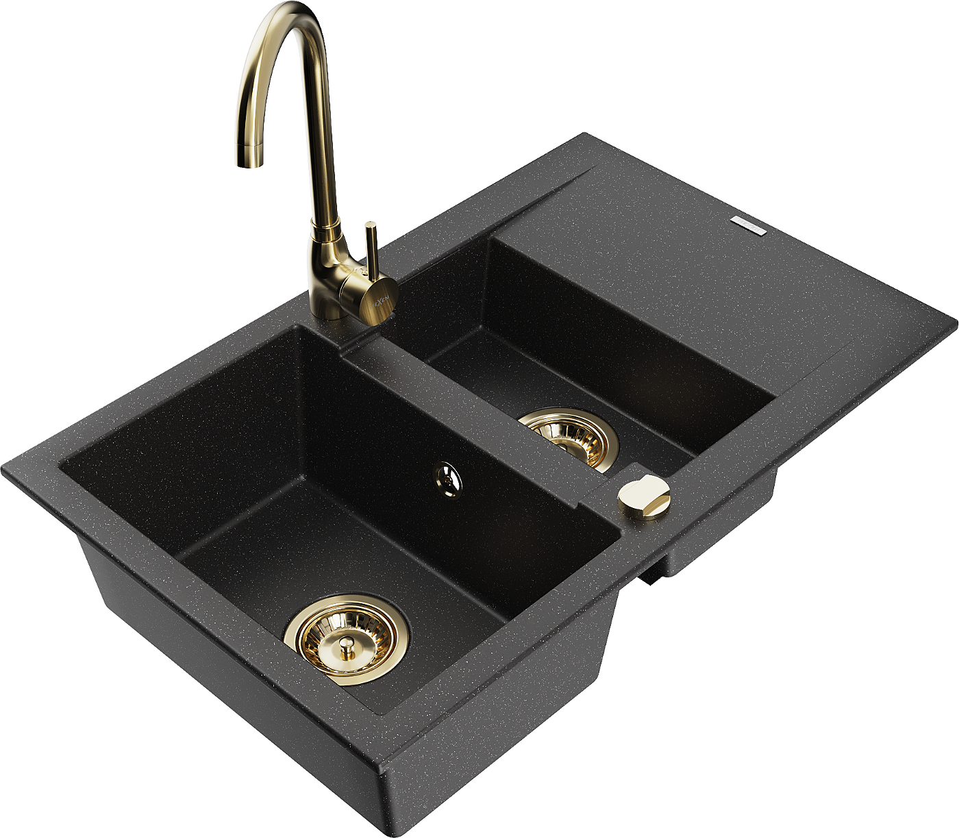 Mexen Gaspar granitový drez 1,5-komorový s odkvapkávačom a kuchynskou batériou Telma, čierny/strieborný - 6507-73-670200-50