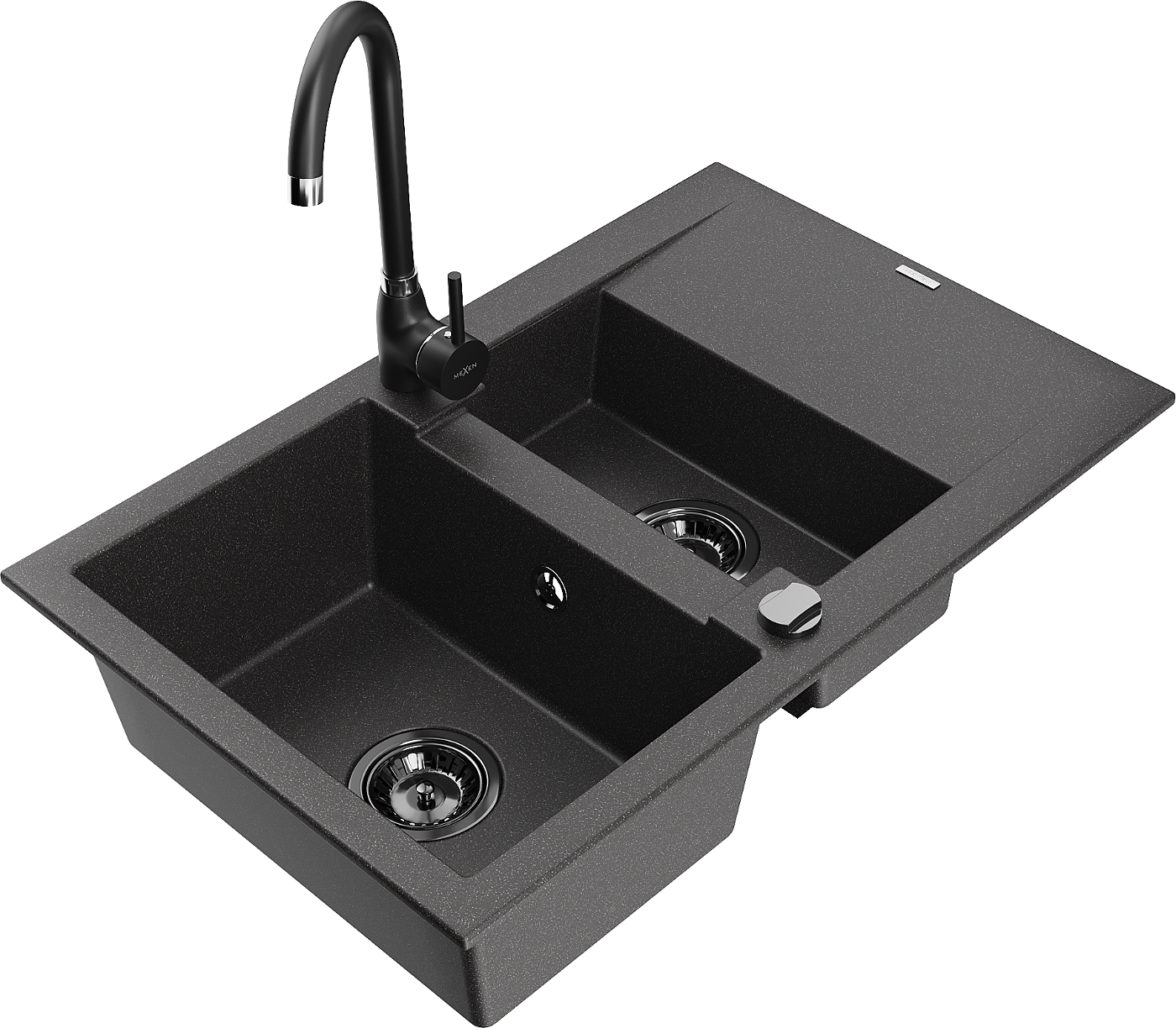 Mexen Gaspar granitový drez 1,5-komorový s odkvapkávadou a kuchynskou batériou Telma, čierny s bodkami - 6507-76-670200-70-B