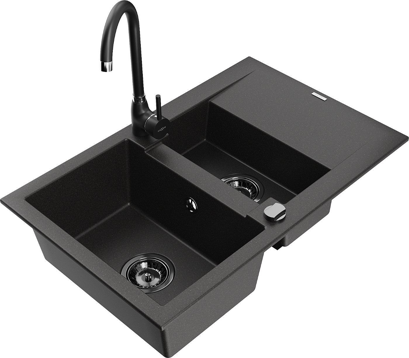Mexen Gaspar granitový drez 1,5-komorový s odkvapkávačom a kuchynskou batériou Telma, čierny - 6507-77-670200-70-B