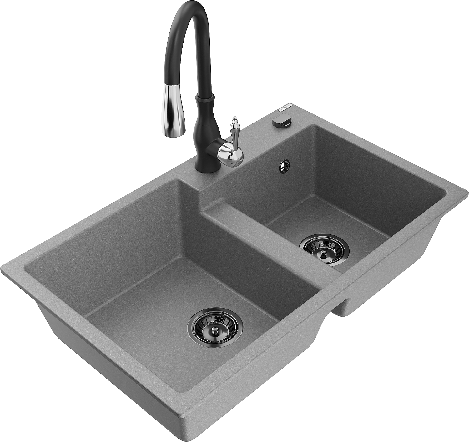 Mexen Tomas žulový drez 2-komorový s kuchynskou batériou Savita, sivý - 6516-71-672601-70-B