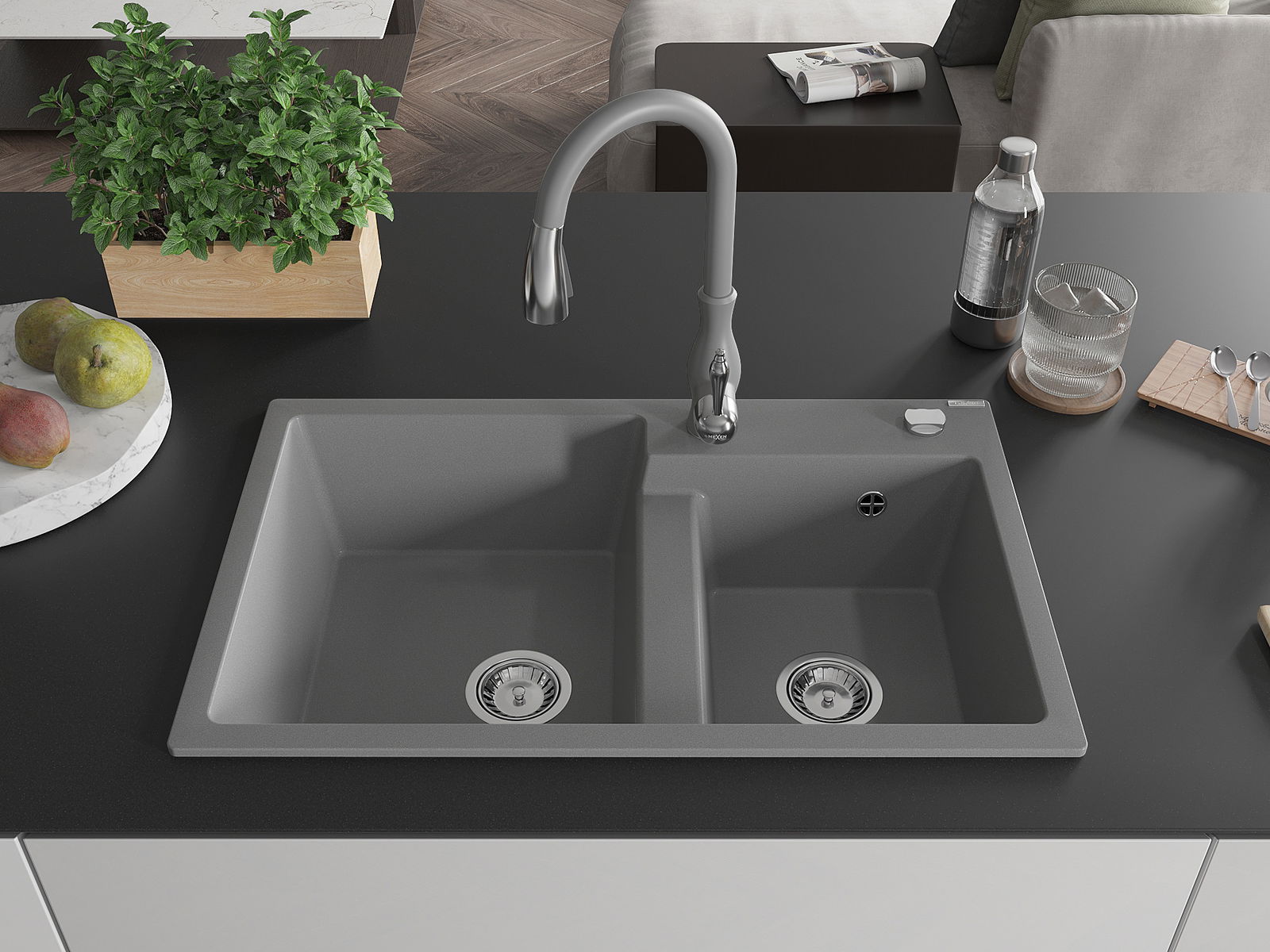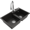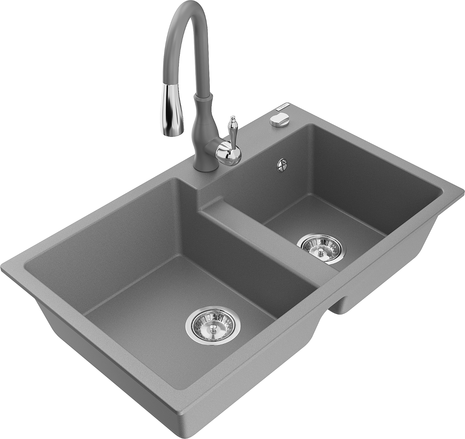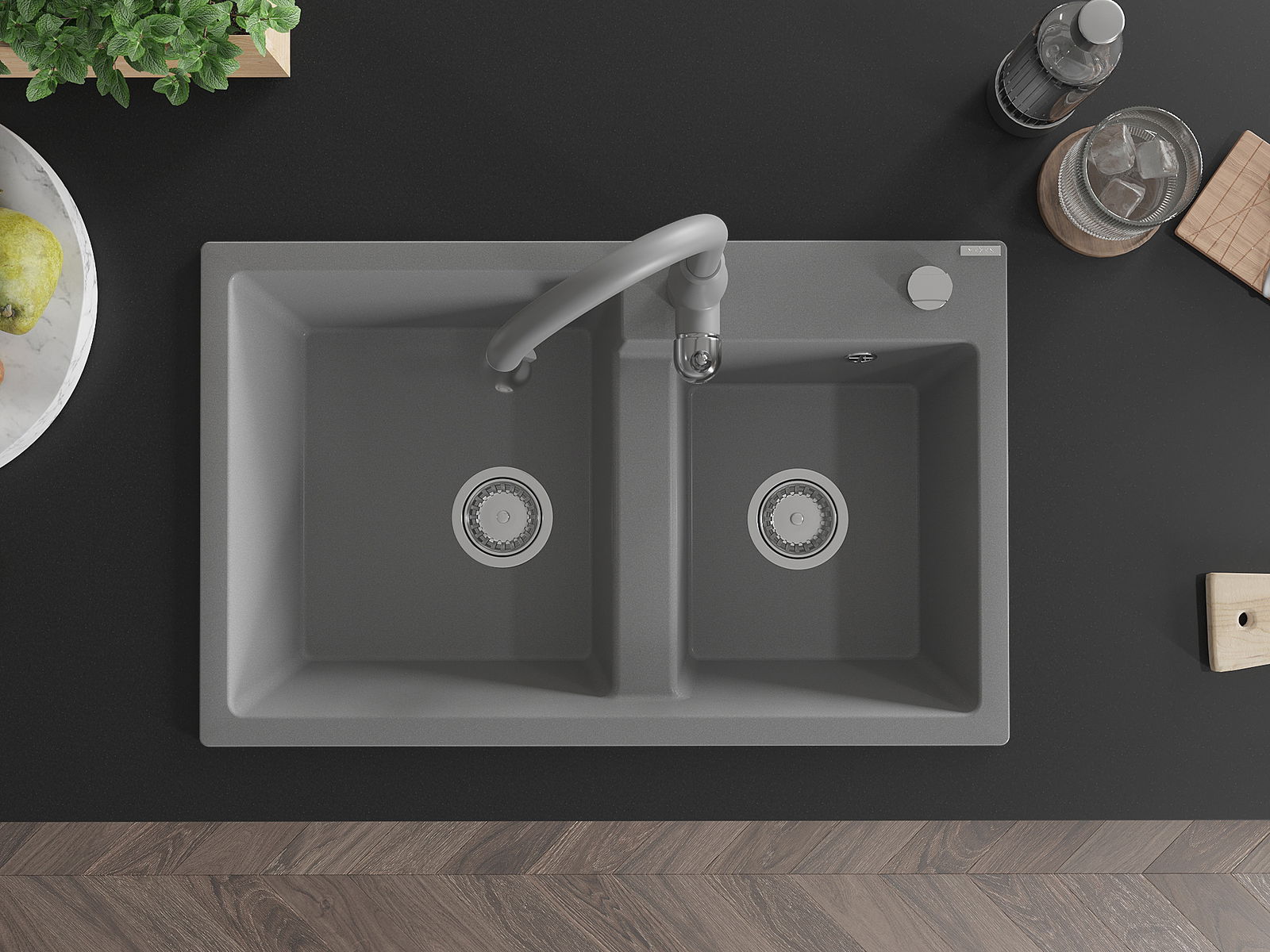 Mexen Tomas granitový drez 2-komorový s kuchynskou batériou Savita, šedý - 6516-71-672601-71