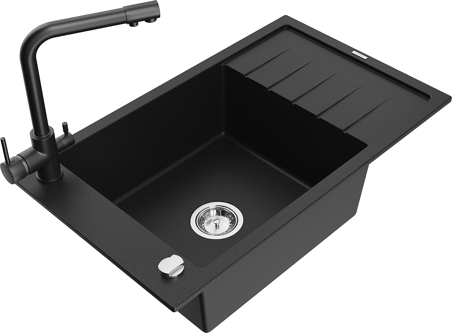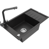 Mexen Elias žulový drez s jednou komorou a odkvapkávačom a kuchynskou batériou Duero, čierny - 6511-77-671600-70