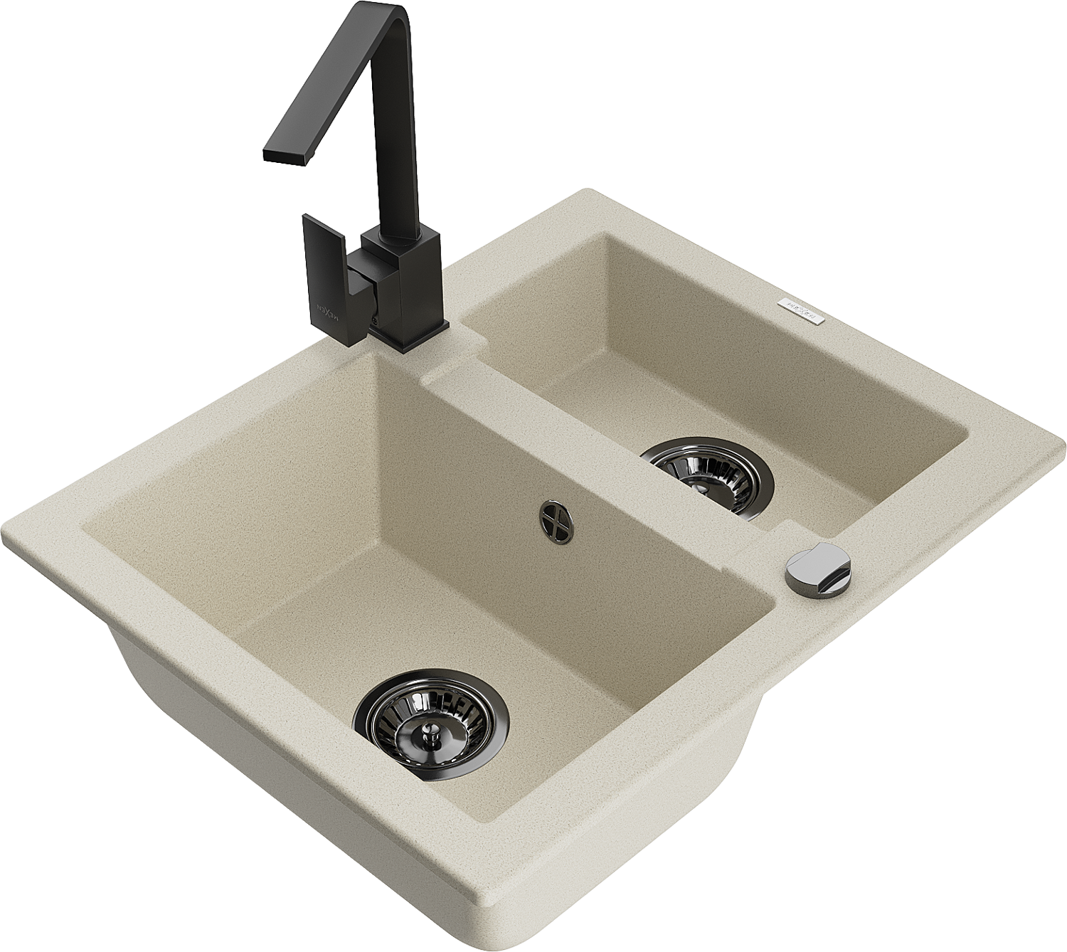 Mexen Carlos žulový kuchynský drez 1,5-komorový s kuchynskou batériou Rita, béžový - 6518-69-670300-70