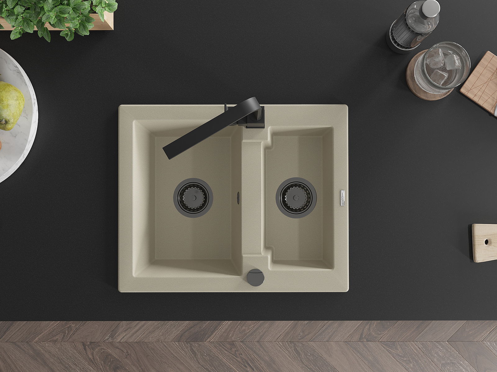 Povrch kuchynského drezu je odolný voči škvrnám a zafarbeniu, vďaka čomu sa ľahko udržiava a zachováva svoju farbu počas dlhého obdobia používania. Estetický a praktický doplnok pre každú kuchyňu.