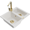 Povrch kuchynského drezu je odolný voči škvrnám a zafarbeniu, vďaka čomu sa ľahko udržiava a zachováva svoju farbu počas dlhého obdobia používania. Estetický a praktický doplnok pre každú kuchyňu.