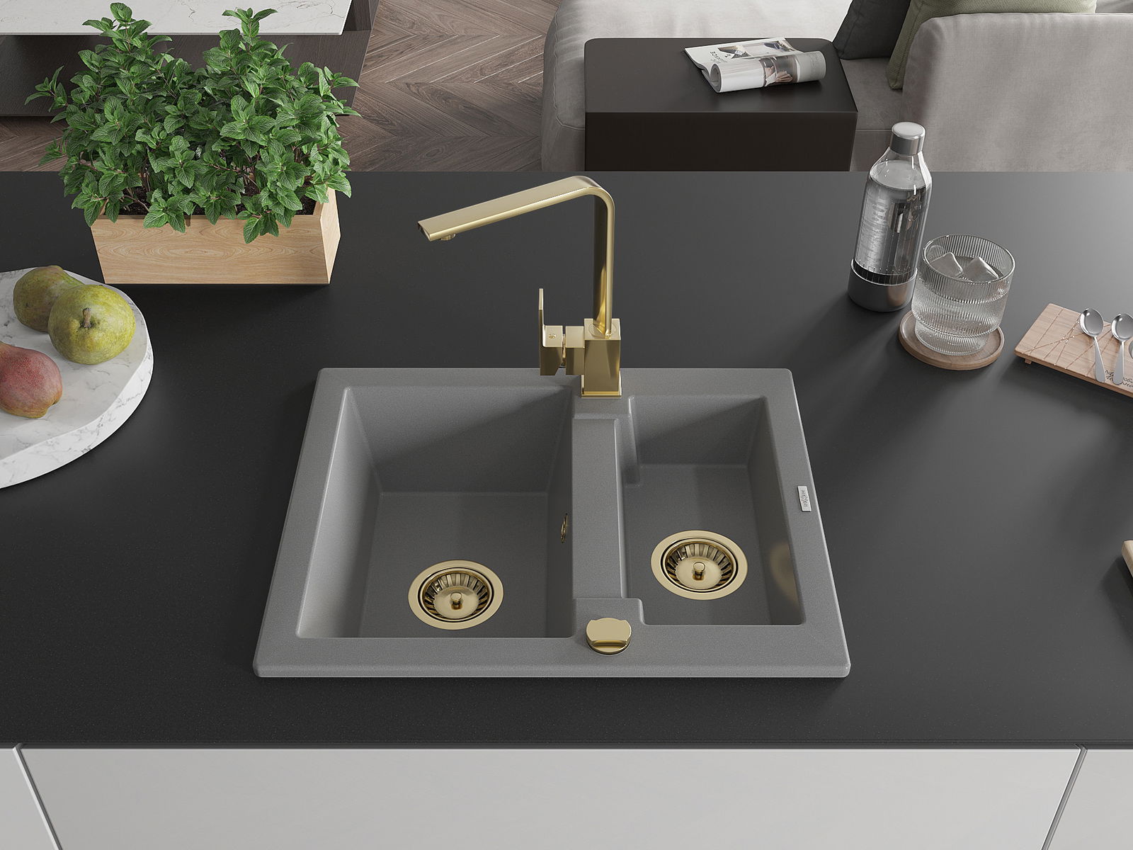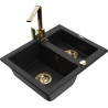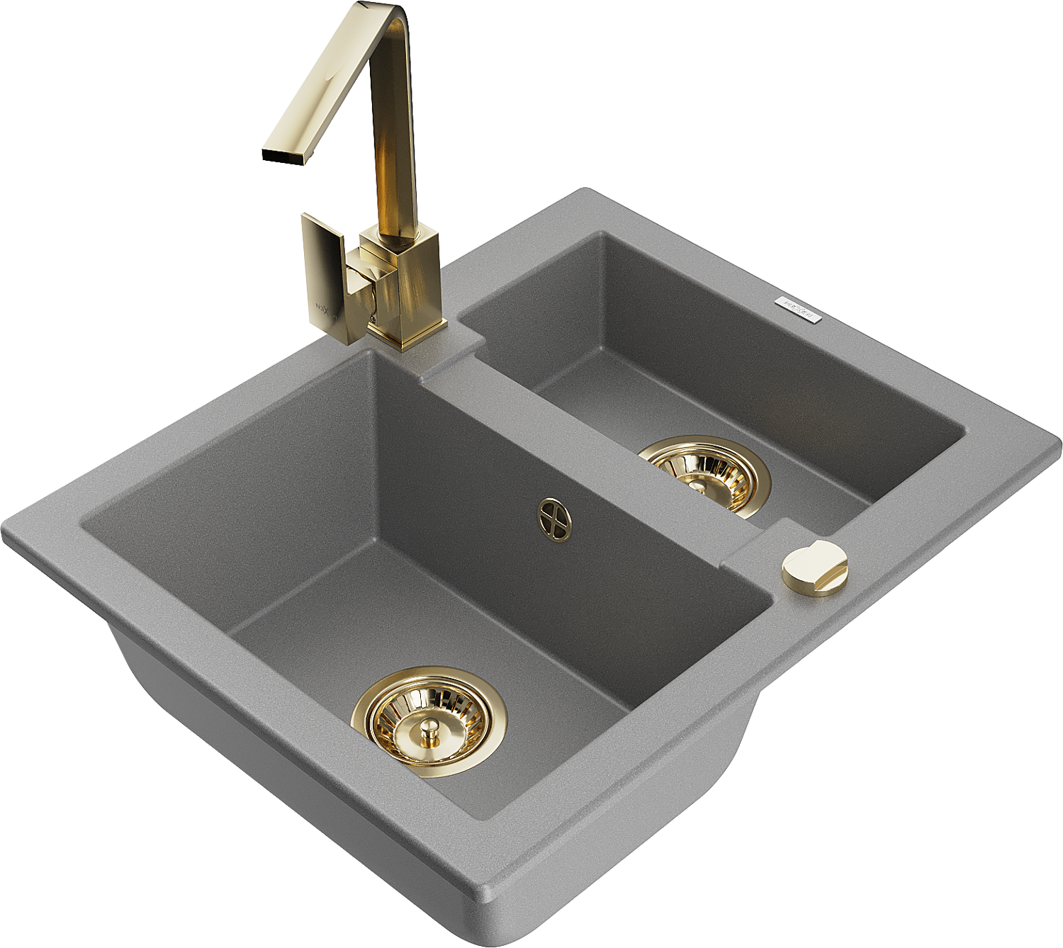 Mexen Carlos granitový kuchynský drez 1,5-komorový s kuchynskou batériou Rita, sivý - 6518-71-670300-50