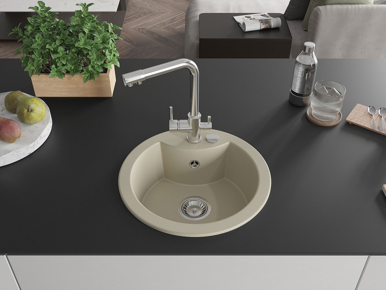 Povrch umývadla je odolný voči škvrnám a sfarbeniu, vďaka čomu sa ľahko čistí a zachováva si svoju farbu po dlhú dobu. Estetický a prakticky dopĺňajúci každú kuchyňu.