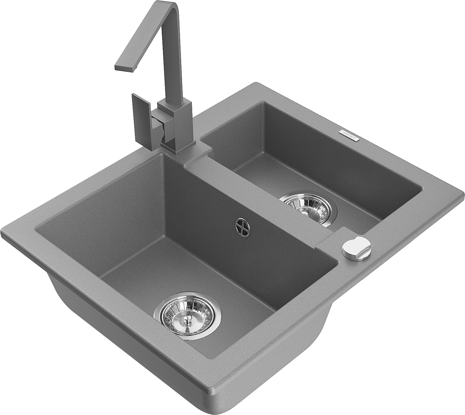 Mexen Carlos žulový drez 1,5-komorový s kuchynskou batériou Rita, sivý - 6518-71-670300-71