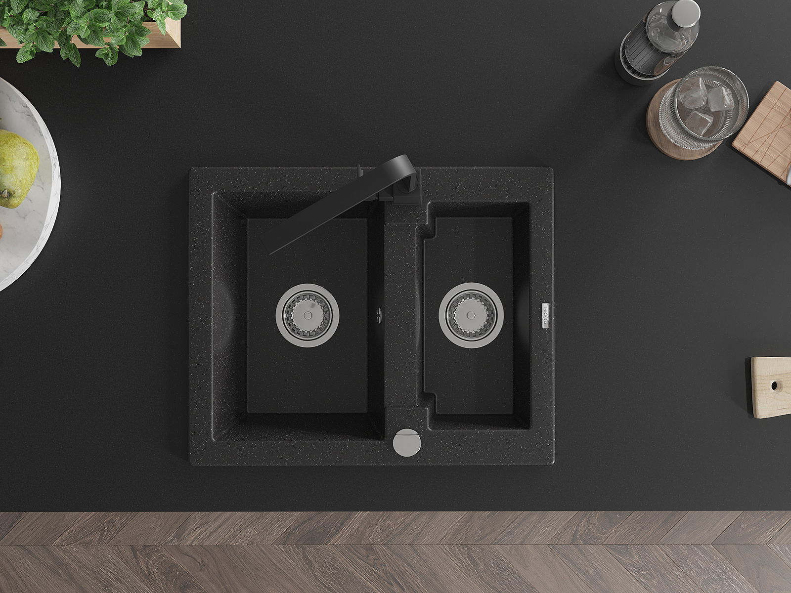 Povrch umývadla je odolný voči škvrnám a sfarbeniu, vďaka čomu sa ľahko čistí a zachováva si svoju farbu po dlhú dobu. Estetický a prakticky dopĺňajúci každú kuchyňu.