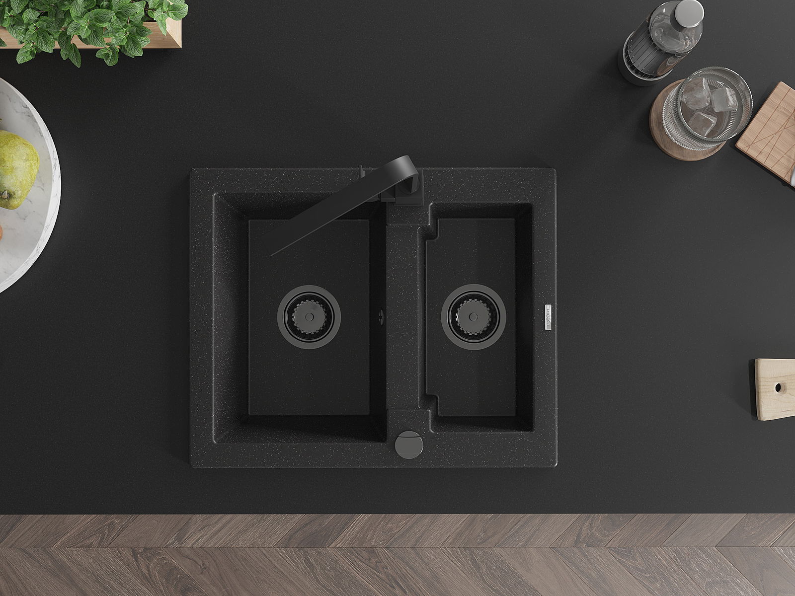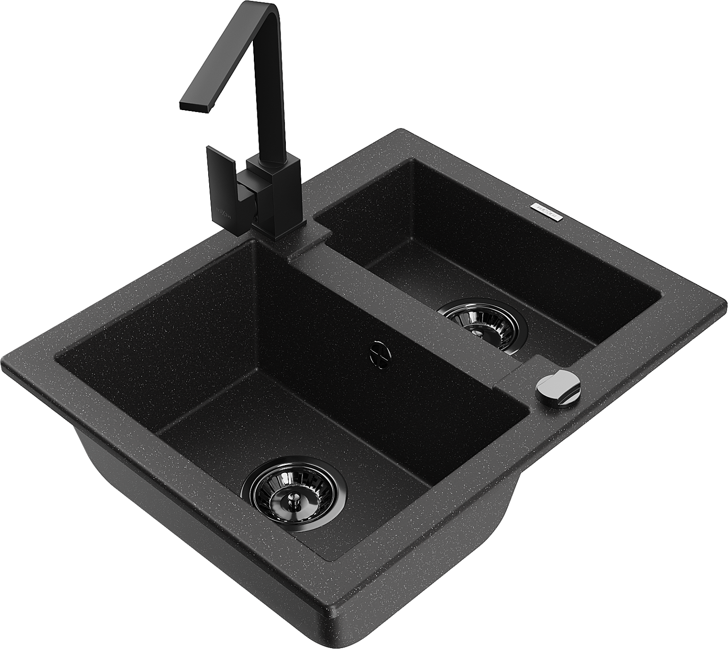 Mexen Carlos granitový drez s 1,5 komorou s kuchynskou batériou Rita, čierny/strieborný metalíza - 6518-73-670300-70-B