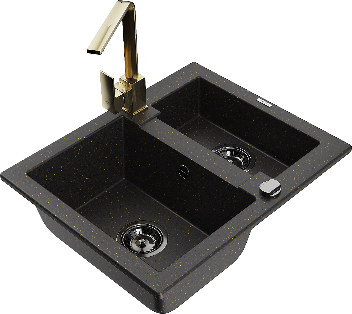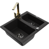 Mexen Carlos granitový drez 1,5-komorový s kuchynskou batériou Rita, čierny/zlatý metalik - 6518-75-670300-50-B