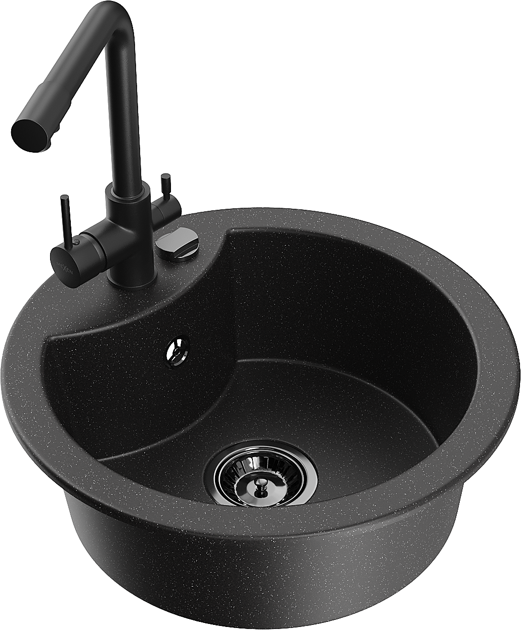 Mexen Diego granitový drez 1-komorový s kuchynskou batériou Duero, čierny/strieborný metalik - 6512-73-671600-70-B