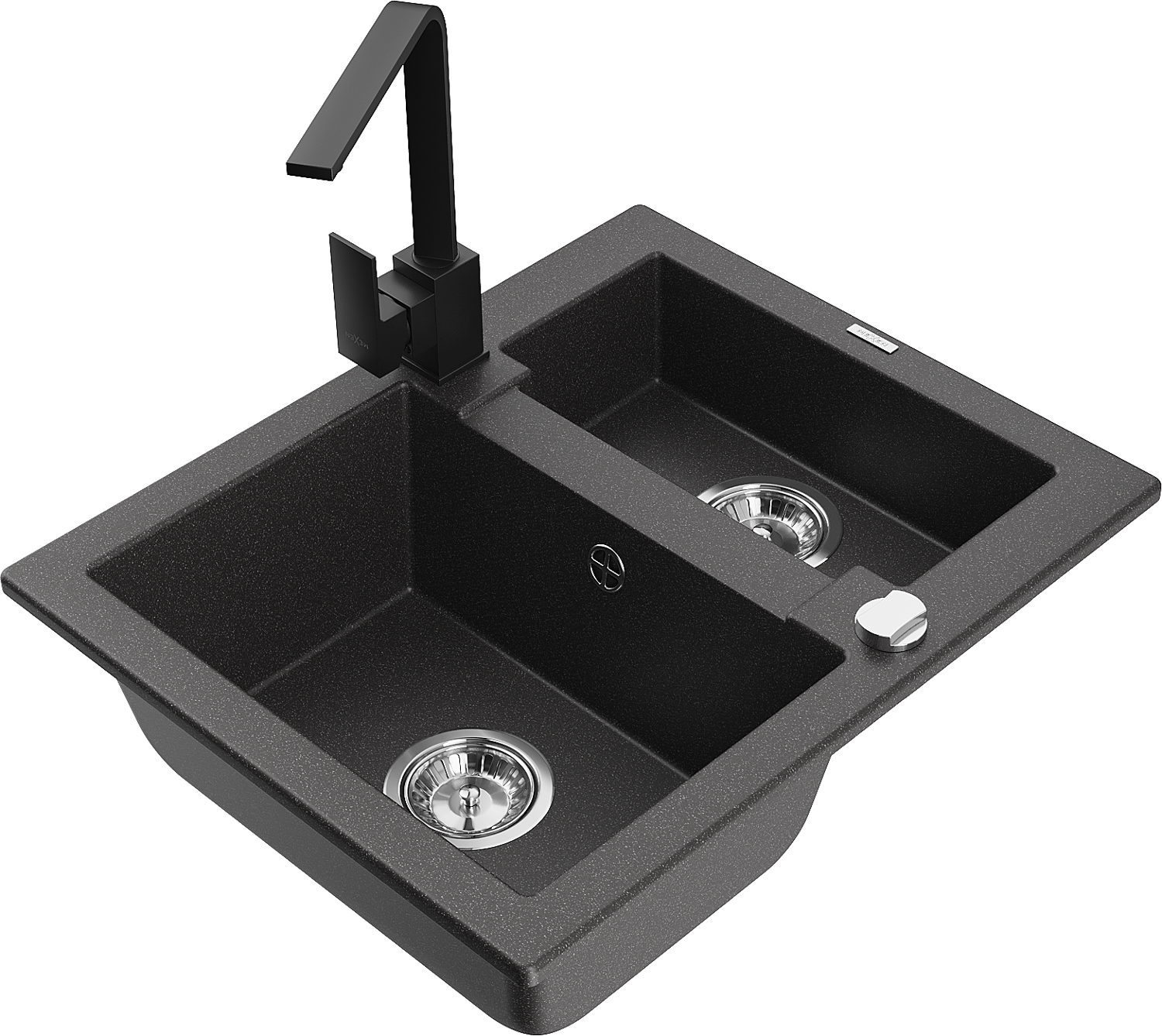 Mexen Carlos granitový kuchynský drez 1,5-komorový s kuchynskou batériou Rita, čierny bodkovaný - 6518-76-670300-70