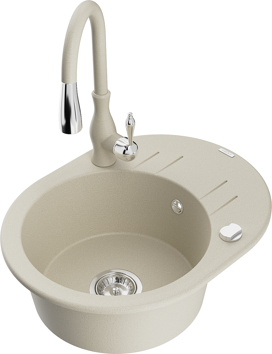 Mexen Kevin granitový drez 1-komorový s odkvapkávačom a kuchynskou batériou Savita, béžový - 6517-69-672601-69
