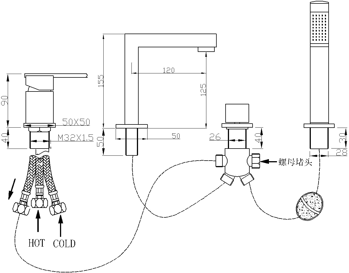 Batériu je možné namontovať na hodnosť vane v špeciálne pripravených otvoroch. Táto metóda poskytuje jednoduchý a pohodlný prístup a umožňuje vám rýchlo upraviť teplotu prúdu a vody. Estetické riešenie, zdôrazňujúce štýl kúpeľne.