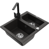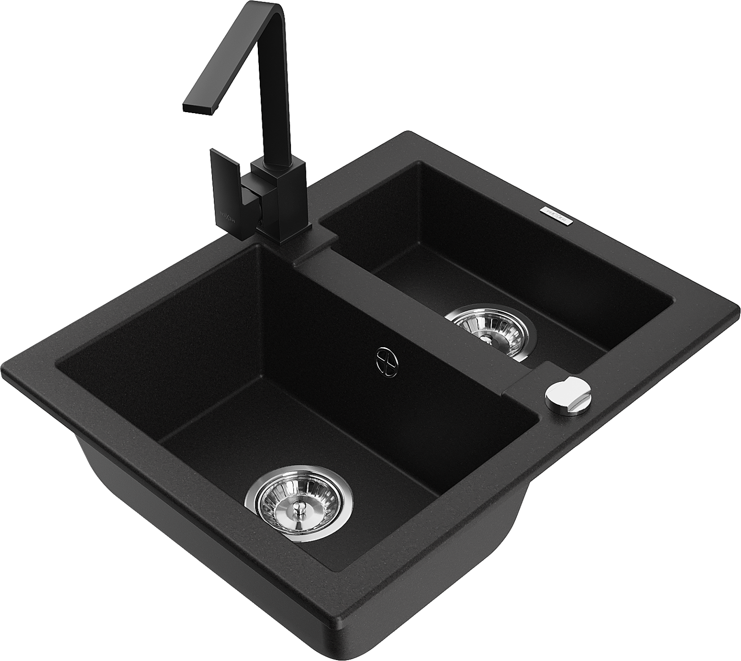 Mexen Carlos žulový drez 1,5-komorový s kuchynskou batériou Rita, čierny - 6518-77-670300-70