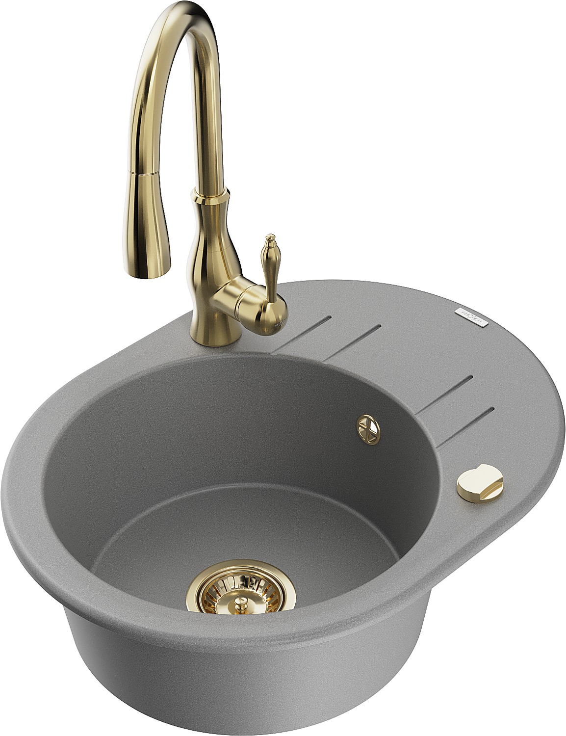 Mexen Kevin granitový drez 1-komorový s odkvapkávačom a kuchynskou batériou Savita, šedý - 6517-71-672601-50