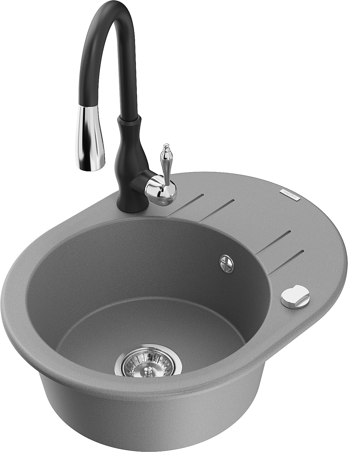 Mexen Kevin žulový drez jednodrezový s odkvapkávacou plochou a kuchynskou batériou Savita, šedá - 6517-71-672601-70