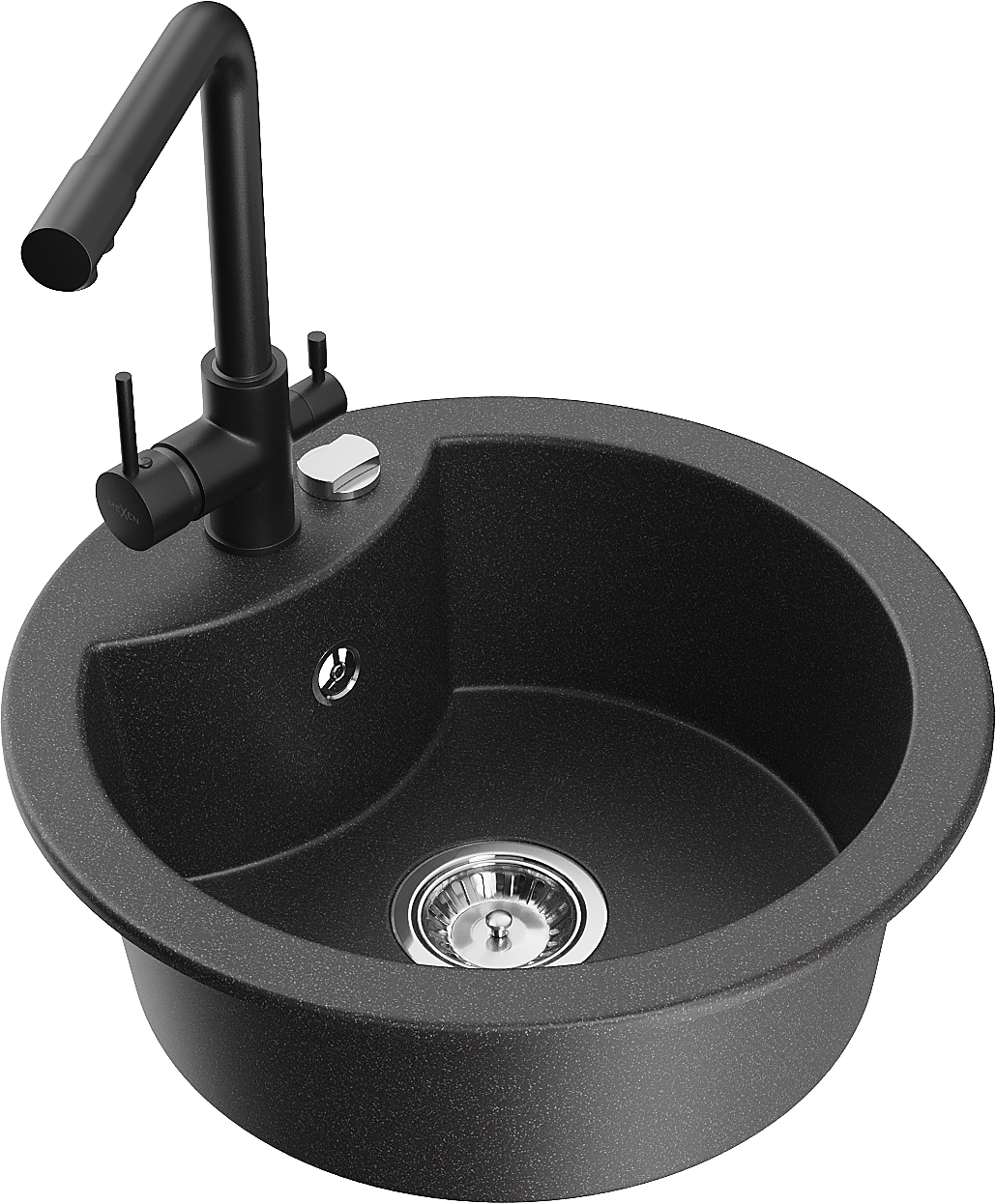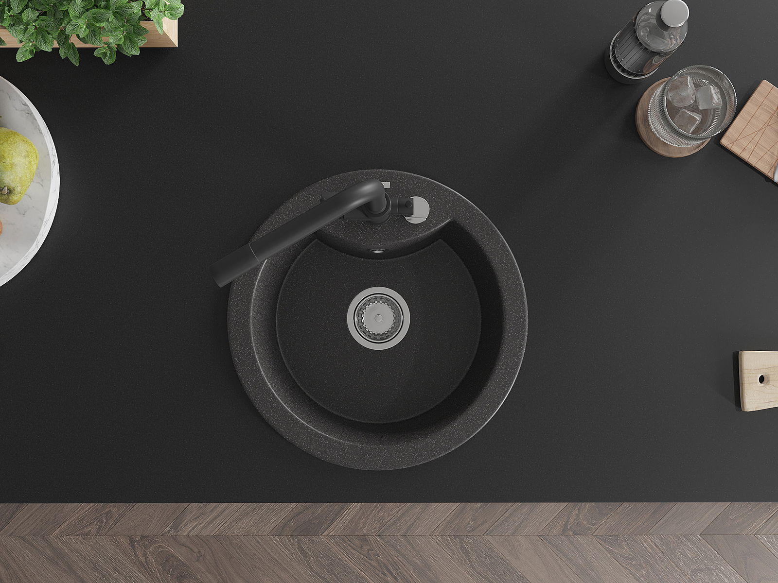 Mexen Diego žulový drez s jednou komorou a kuchynskou batériou Duero, čierny škvrnitý - 6512-76-671600-70