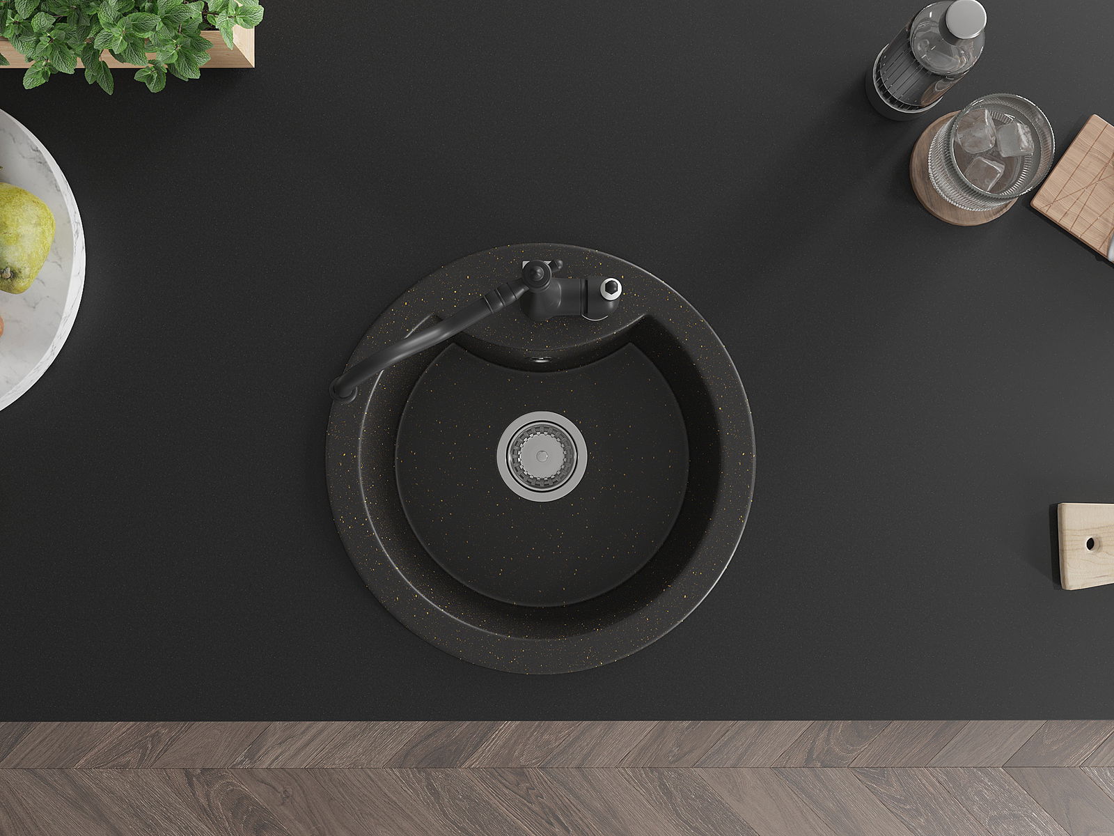 Povrch umývadla je odolný voči škvrnám a sfarbeniu, vďaka čomu sa ľahko čistí a zachováva si svoju farbu po dlhú dobu. Estetický a prakticky dopĺňajúci každú kuchyňu.
