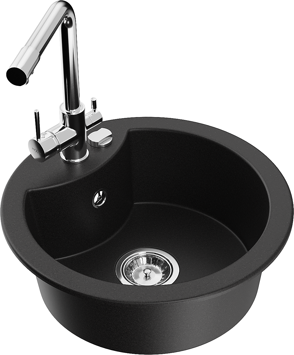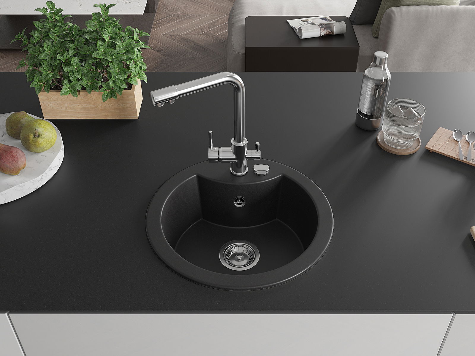 Mexen Diego žulový drez 1-komorový s kuchynskou batériou Duero, čierny - 6512-77-671600-00
