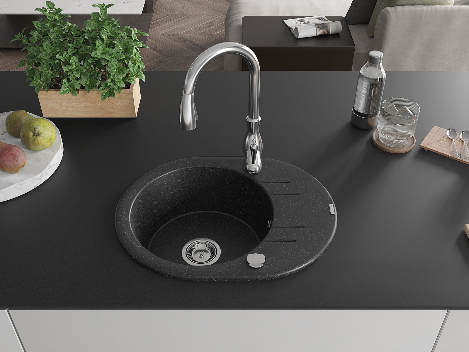 Povrch umývadla je odolný voči škvrnám a sfarbeniu, vďaka čomu sa ľahko čistí a zachováva si svoju farbu po dlhú dobu. Estetický a prakticky dopĺňajúci každú kuchyňu.