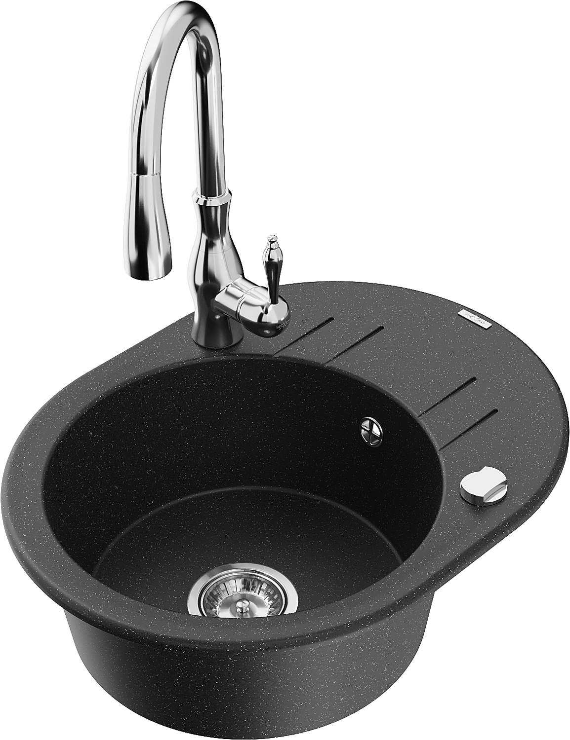 Mexen Kevin žulový drez 1-komorový s odkvapkávačom a kuchynskou batériou Savita, čierny/strieborný metalický - 6517-73-672601-0?