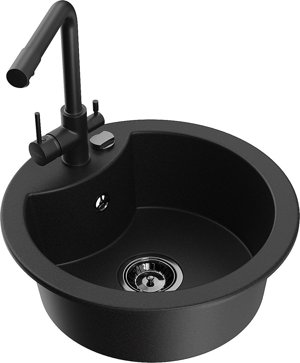 Mexen Diego žulový kuchynský drez s 1 komorou a kuchynskou batériou Duero, čierny - 6512-77-671600-70-B