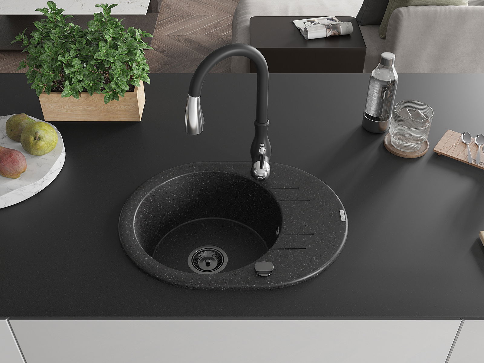 Povrch umývadla je odolný voči škvrnám a sfarbeniu, vďaka čomu sa ľahko čistí a zachováva si svoju farbu po dlhú dobu. Estetický a prakticky dopĺňajúci každú kuchyňu.