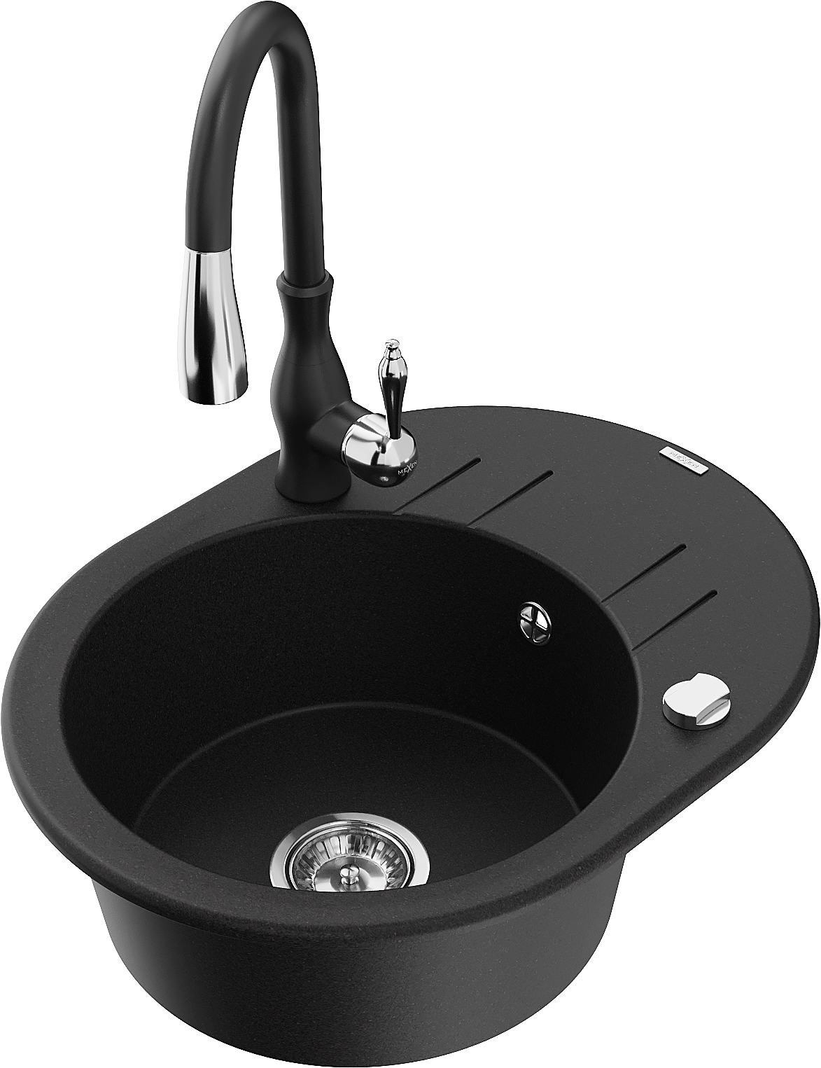 Mexen Kevin jednokomorový granitový drez s odkvapávačom a kuchynskou batériou Savita, čierny - 6517-77-672601-70