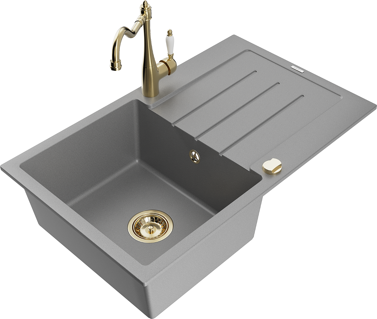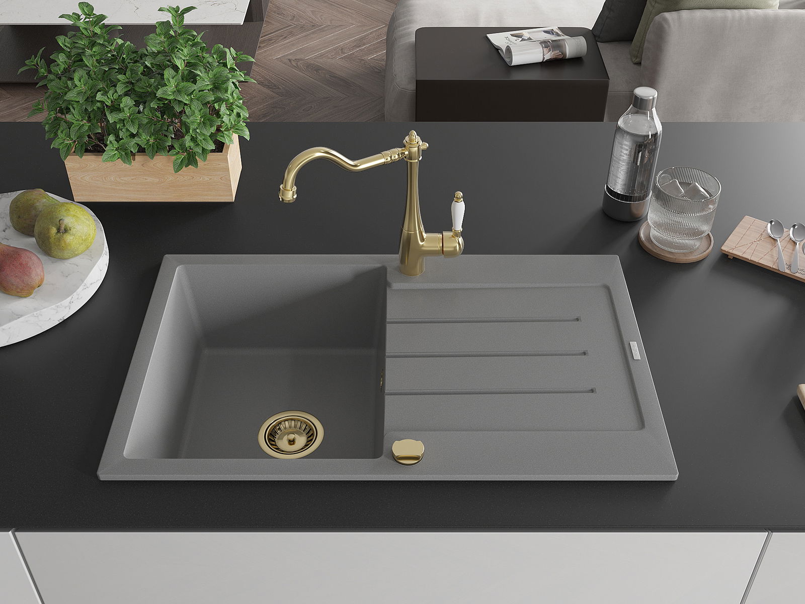Mexen Bruno žulový drez s 1 komorou s odkvapkávačom a kuchynskou batériou Carla, sivý - 6513-71-670700-50