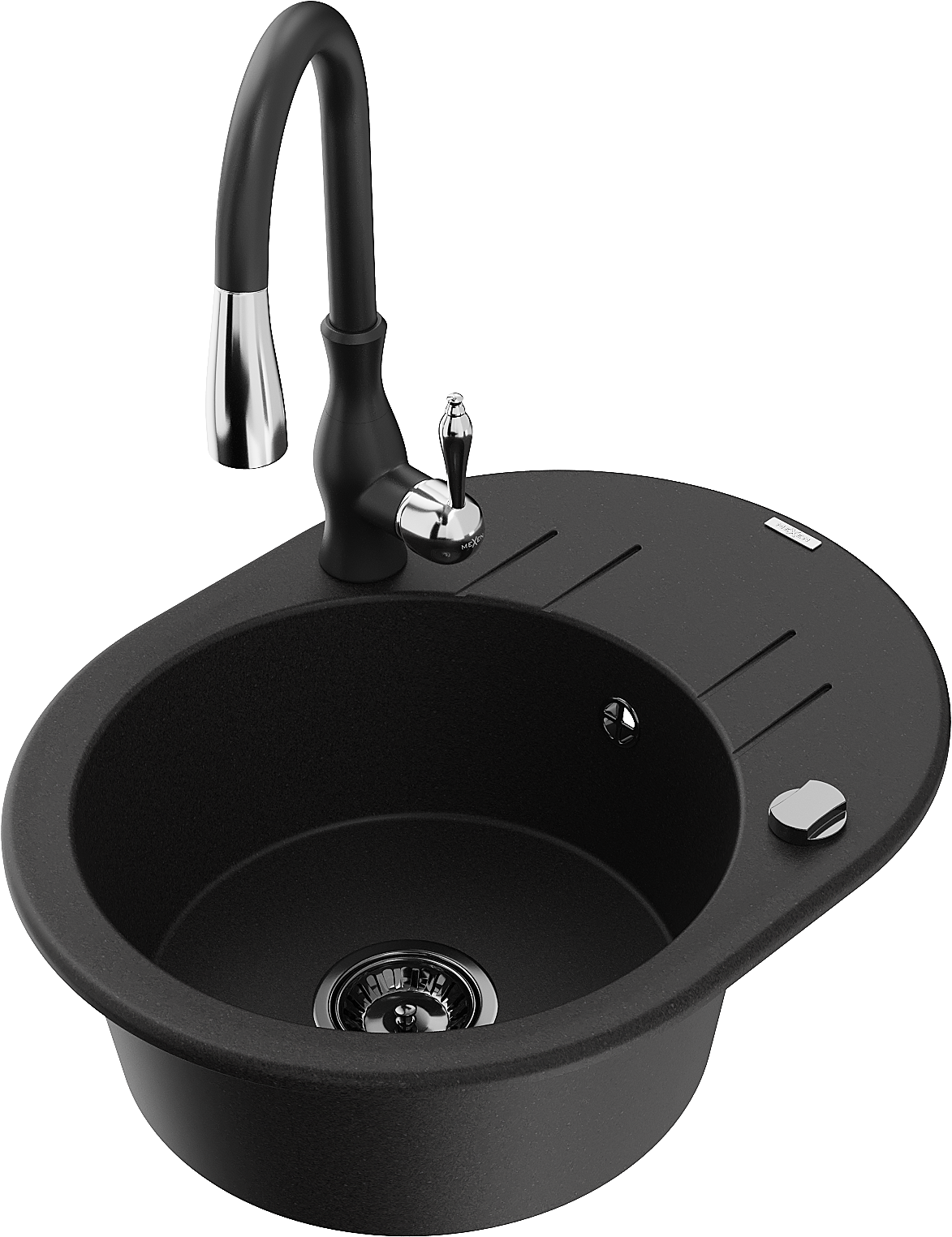 Mexen Kevin žulový drez s 1 komorou s odkvapkávačom a kuchynskou batériou Savita, čierny - 6517-77-672601-70-B
