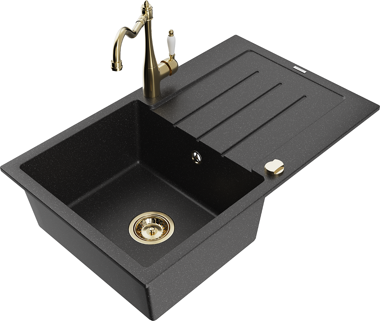 Mexen Bruno žulový kuchynský drez s 1 komorou a odkvapkávačom a kuchynskou batériou Carla, čierny/strieborný metalický - 6513-7?