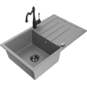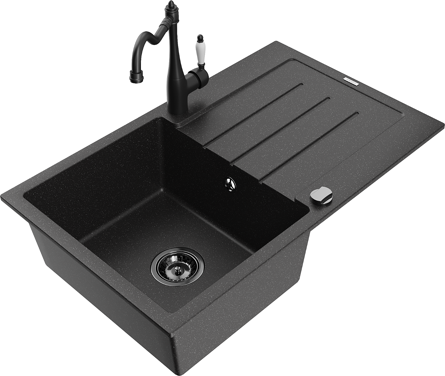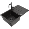 Mexen Bruno žulový drez s jednou komorou s odkvapkávačom a kuchynskou batériou Carla, čierny/strieborný metalik
