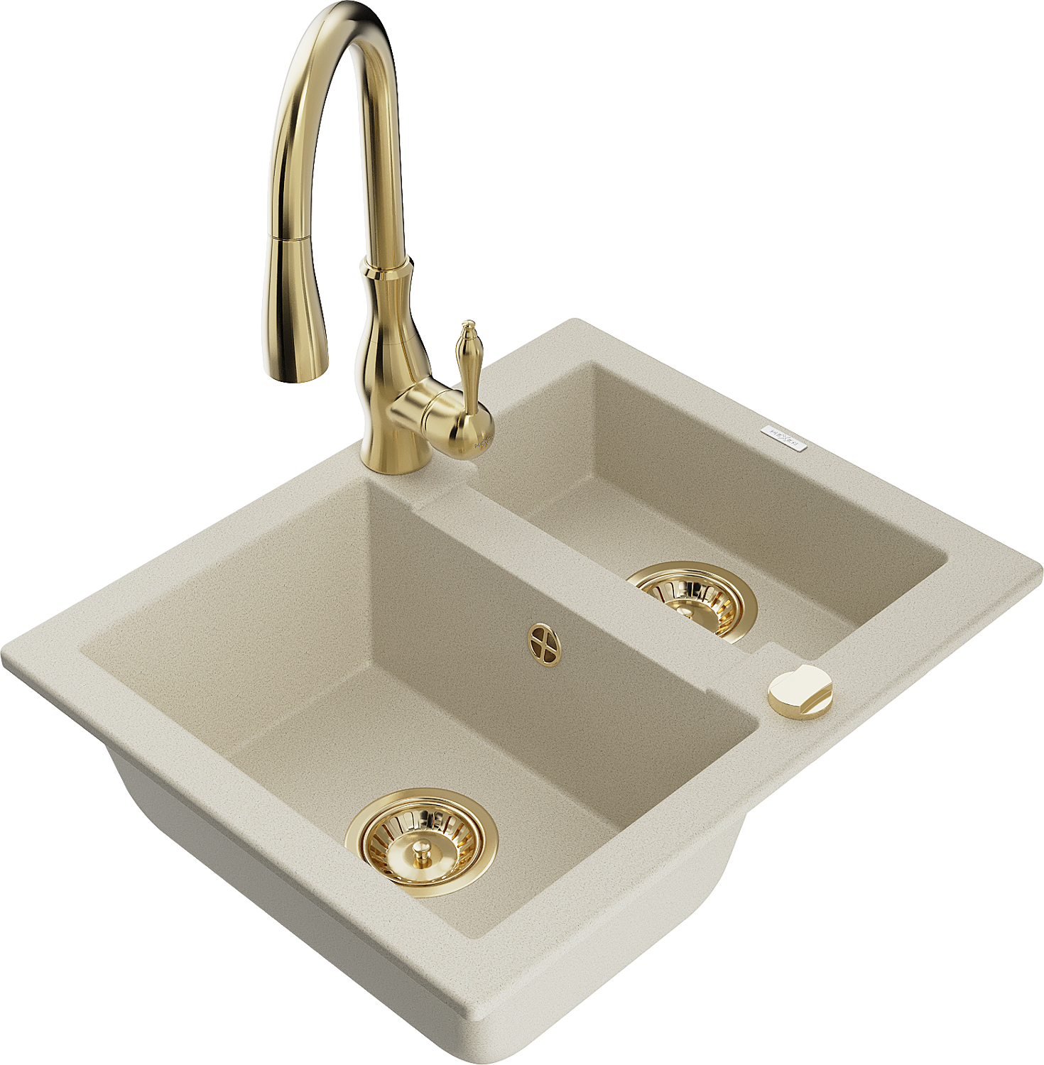 Mexen Carlos granitový drez 1,5-komorový s kuchynskou batériou Savita, béžový - 6518-69-672601-50