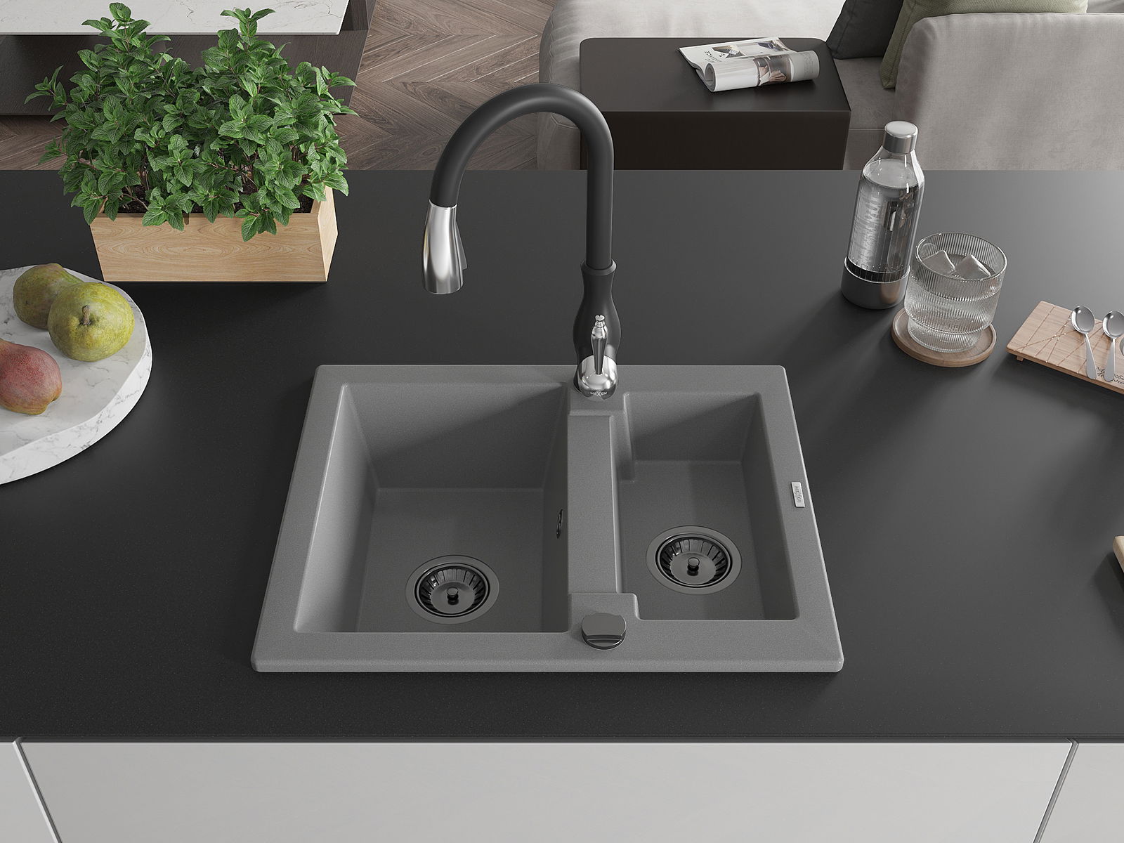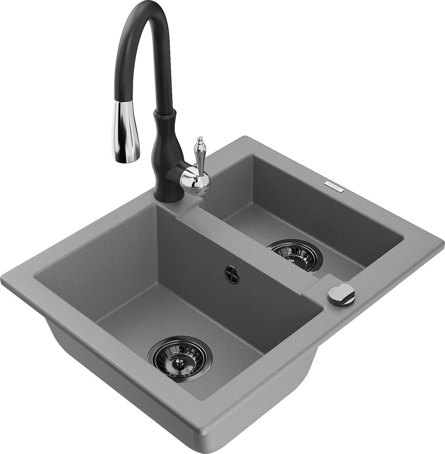 Mexen Carlos žulový kuchynský drez 1,5-komorový s kuchynskou batériou Savita, sivý - 6518-71-672601-70-B