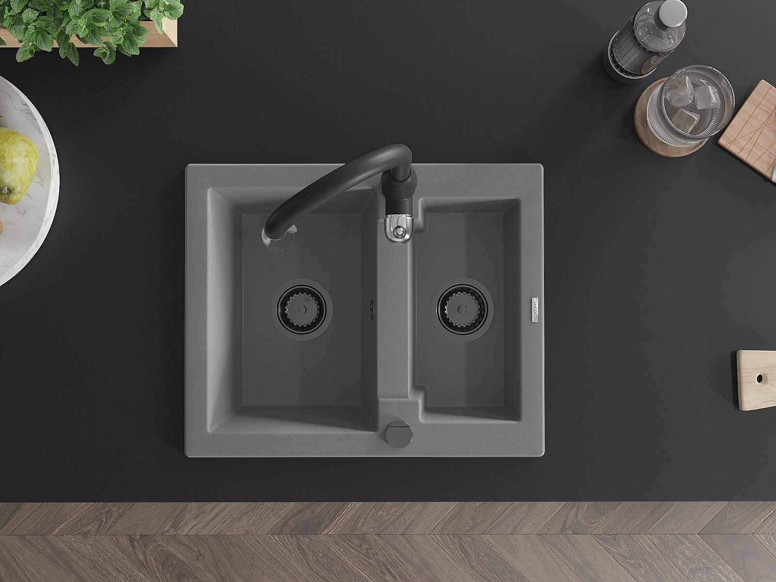 Povrch kuchynského drezu je odolný voči škvrnám a zafarbeniu, vďaka čomu sa ľahko udržiava a zachováva svoju farbu počas dlhého obdobia používania. Estetický a praktický doplnok pre každú kuchyňu.