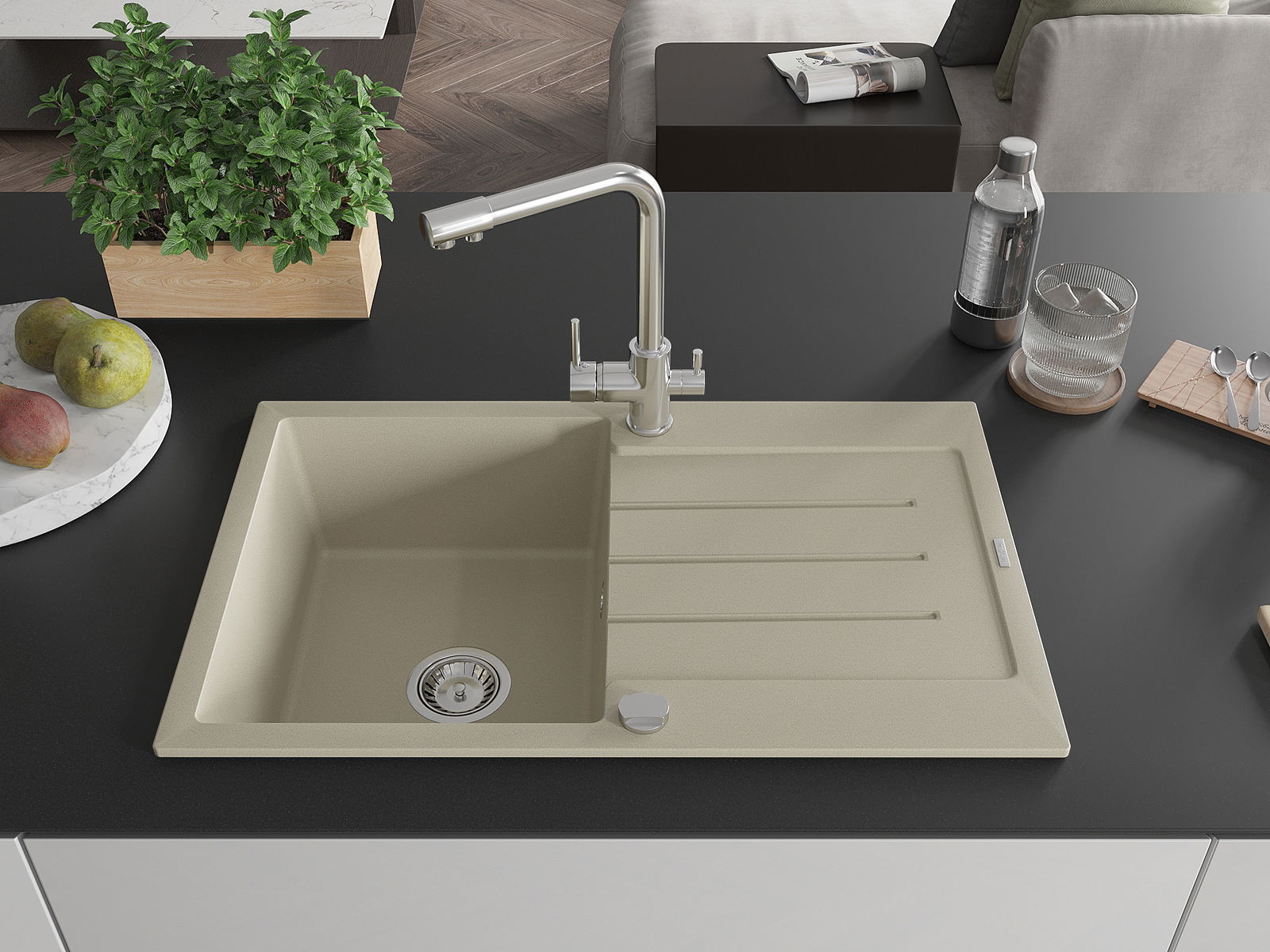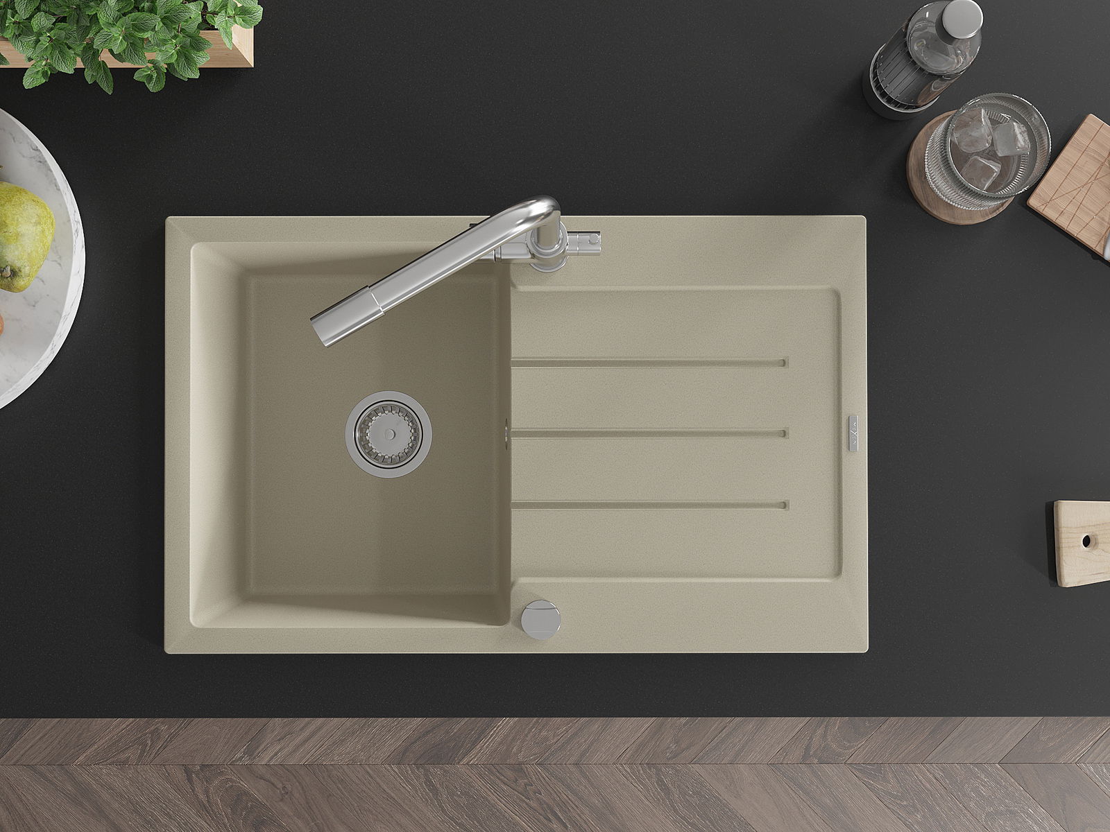 Povrch umývadla je odolný voči škvrnám a sfarbeniu, vďaka čomu sa ľahko čistí a zachováva si svoju farbu po dlhú dobu. Estetický a prakticky dopĺňajúci každú kuchyňu.