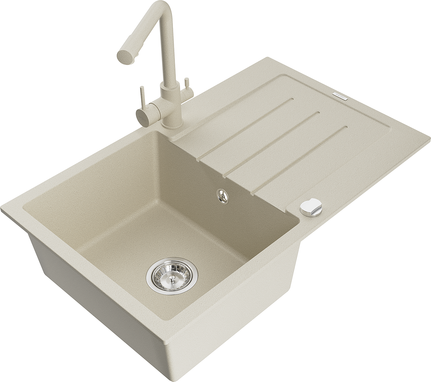 Mexen Bruno granitový kuchynský drez 1-komorový s odkvapkávačom a kuchynskou batériou Duero, béžový - 6513-69-671600-69