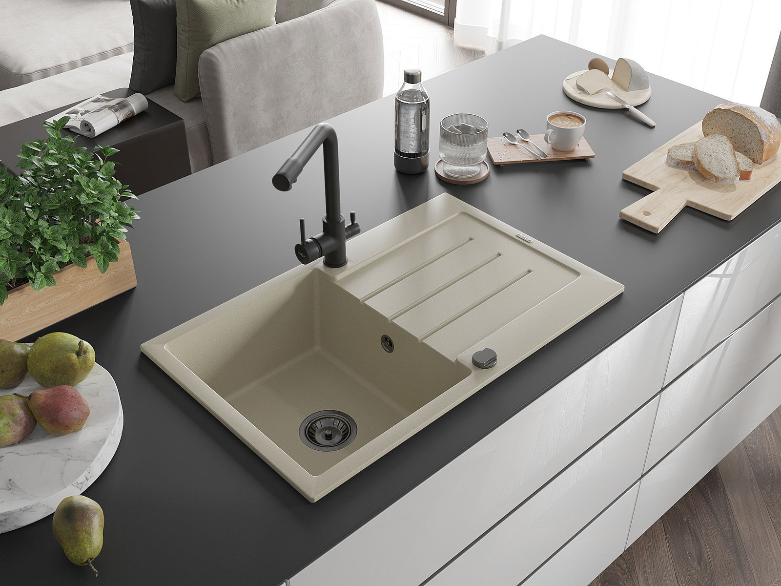 Povrch umývadla je odolný voči škvrnám a sfarbeniu, vďaka čomu sa ľahko čistí a zachováva si svoju farbu po dlhú dobu. Estetický a prakticky dopĺňajúci každú kuchyňu.