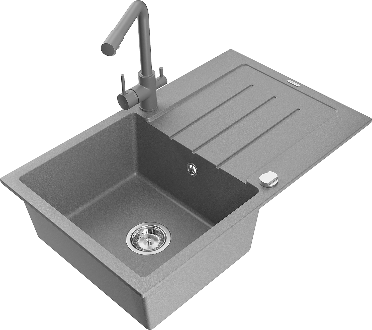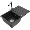 Mexen Bruno žulový kuchynský drez s 1 komorou, odkvapkávačom a kuchynskou batériou Duero, sivý - 6513-71-671600-71