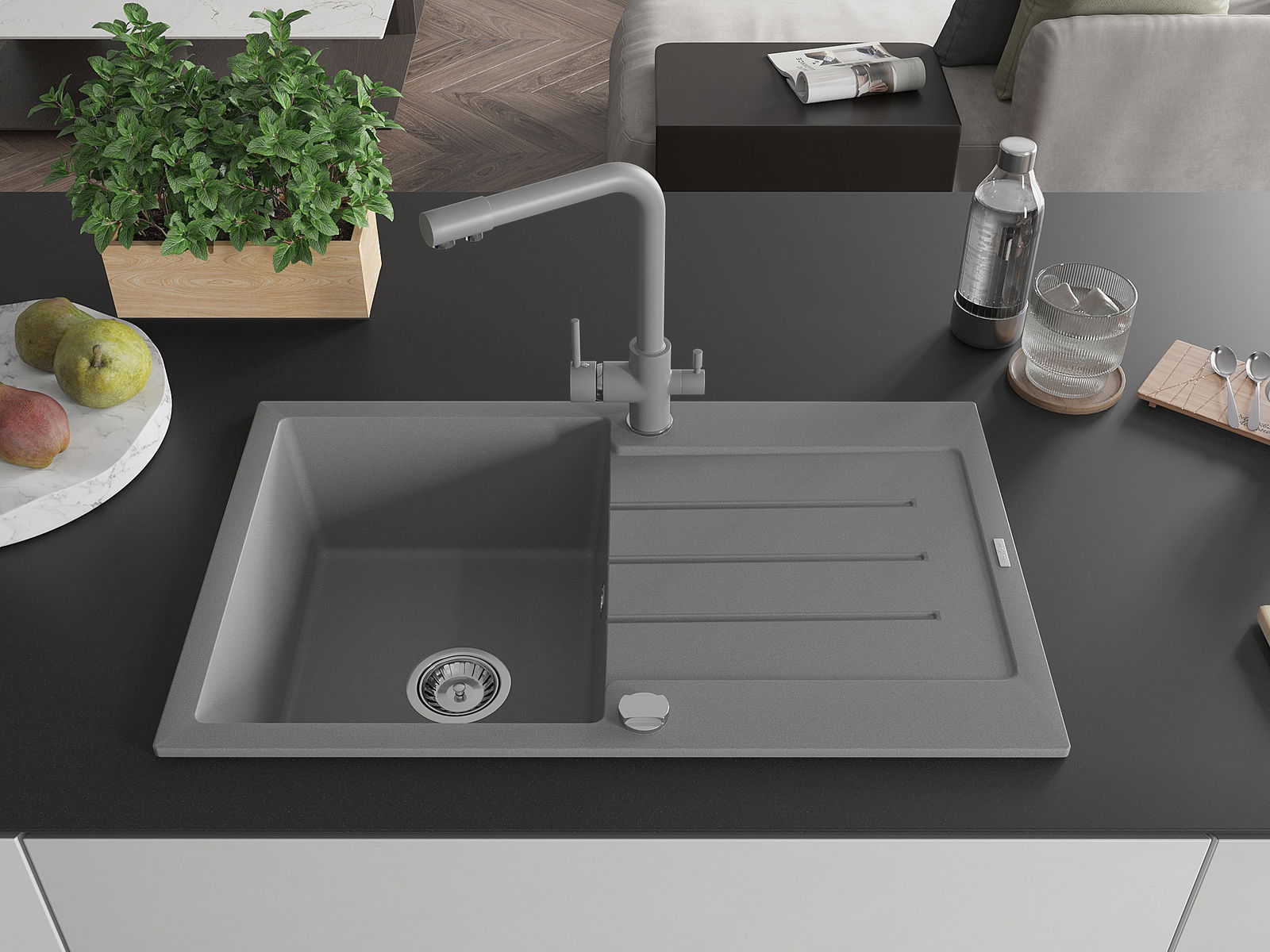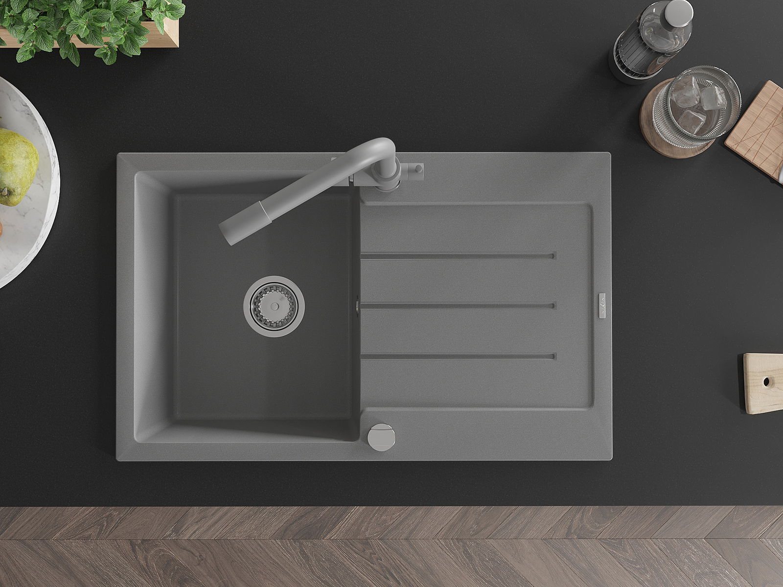 Drez bol vyrobený z vysoko kvalitného granitu. Predstavuje elegantný a predovšetkým praktický doplnok každej kuchyne, nezávisle od jej štýlu. Vysoká kvalita a trvácnosť granitu zaručujú mnohoročné používanie.