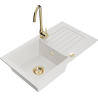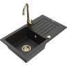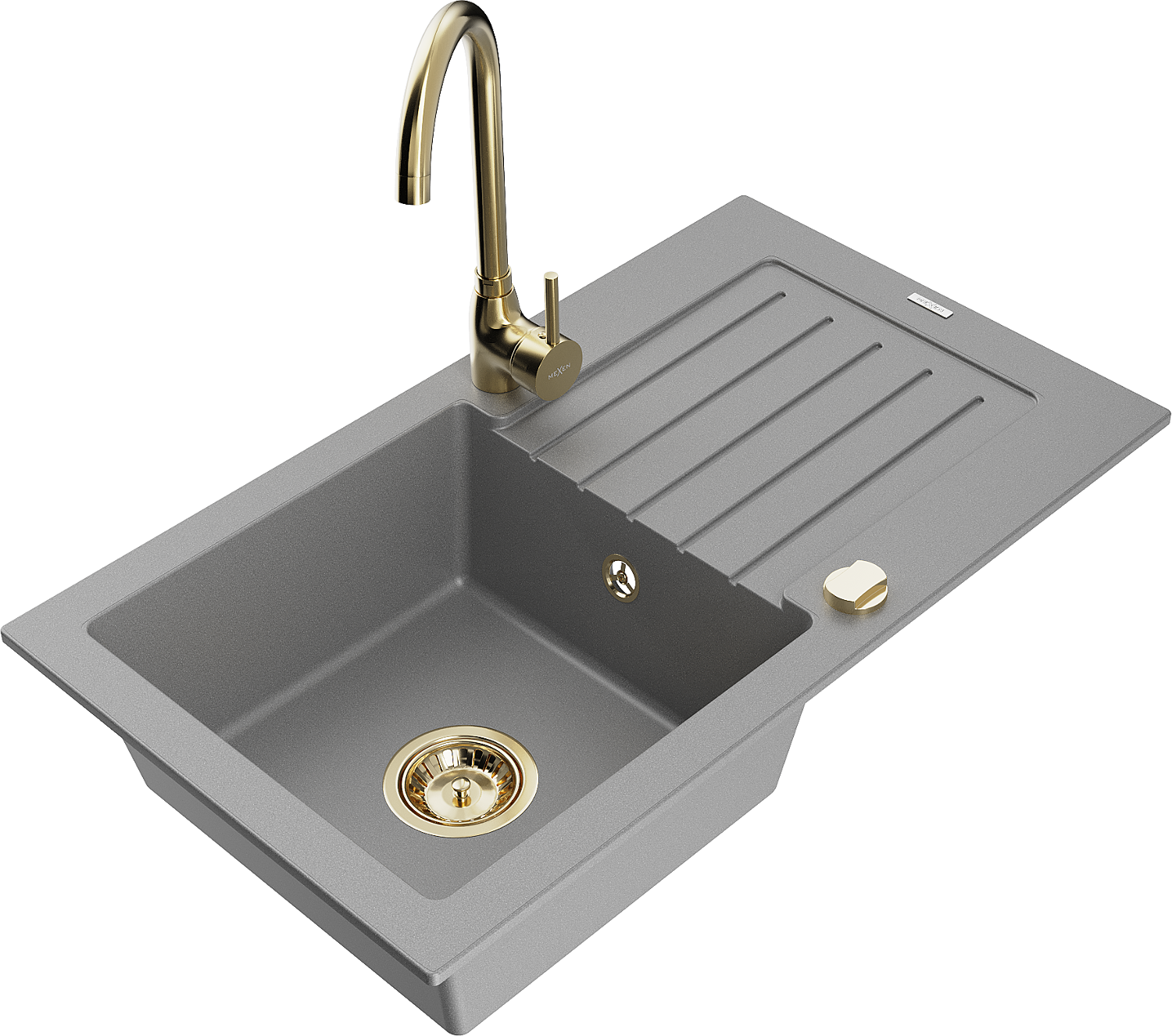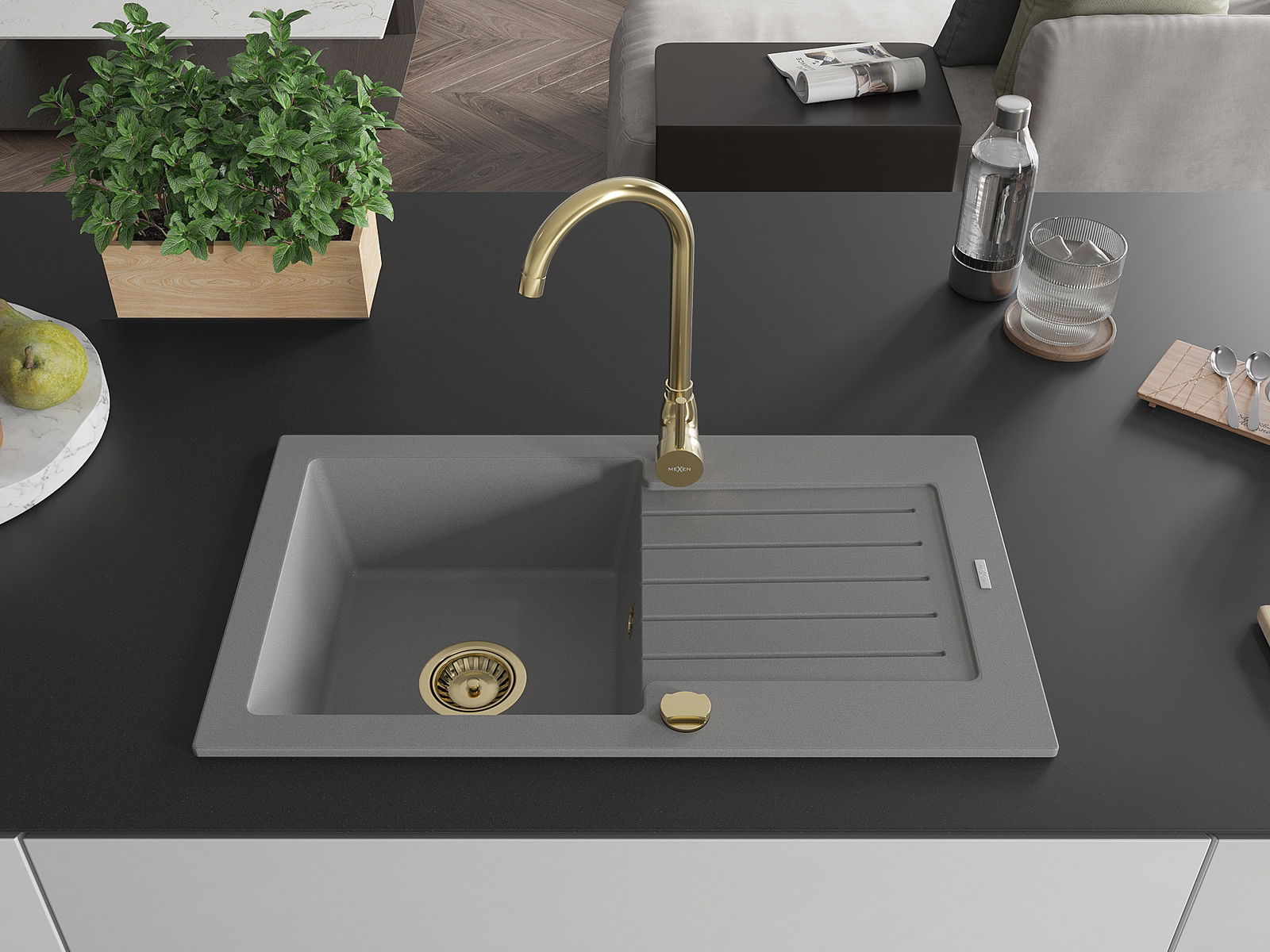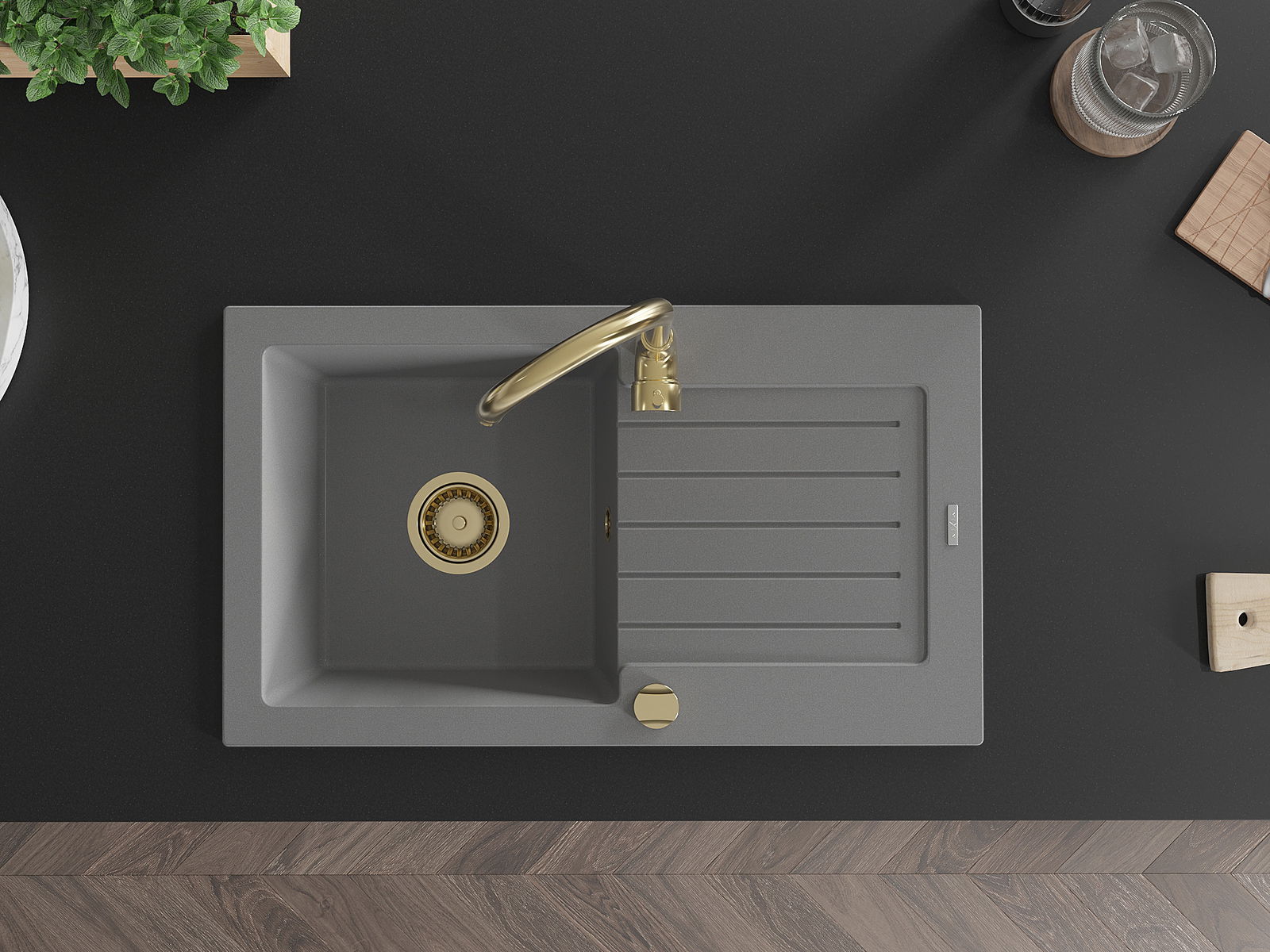 Mexen Pablo granitový drez s 1 komorou, odkvapkávanie a kuchynská batéria Telma, sivá - 6510-71-670200-50
