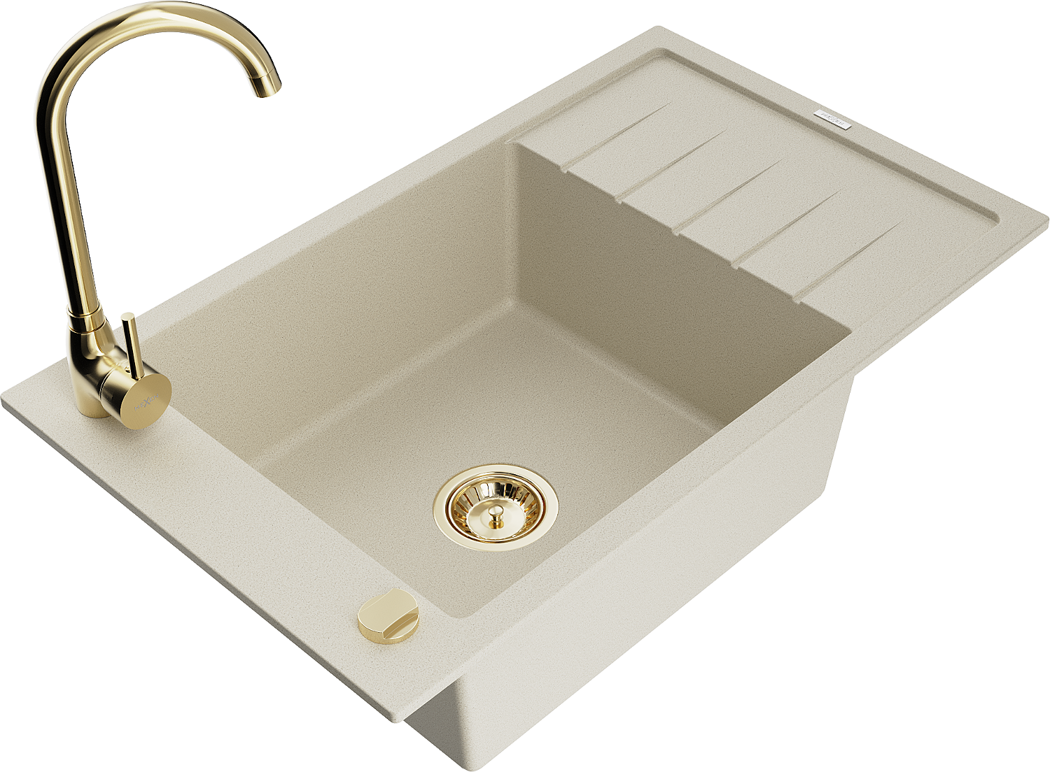 Mexen Elias žulový drez 1-komorový s odkvapkávacou plochou a kuchynskou batériou Telma, béžový - 6511-69-670200-50