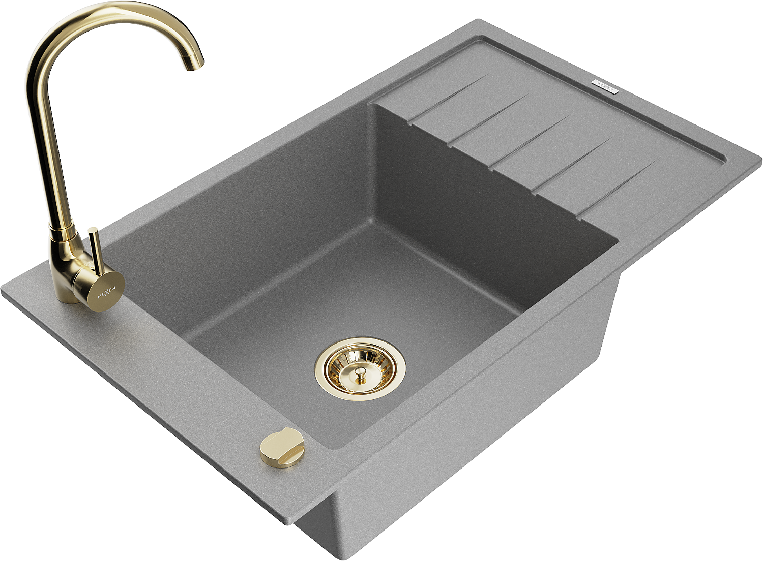Mexen Elias žulový drez s 1 komorou a odkvapkávačom a kuchynskou batériou Telma, sivý - 6511-71-670200-50