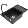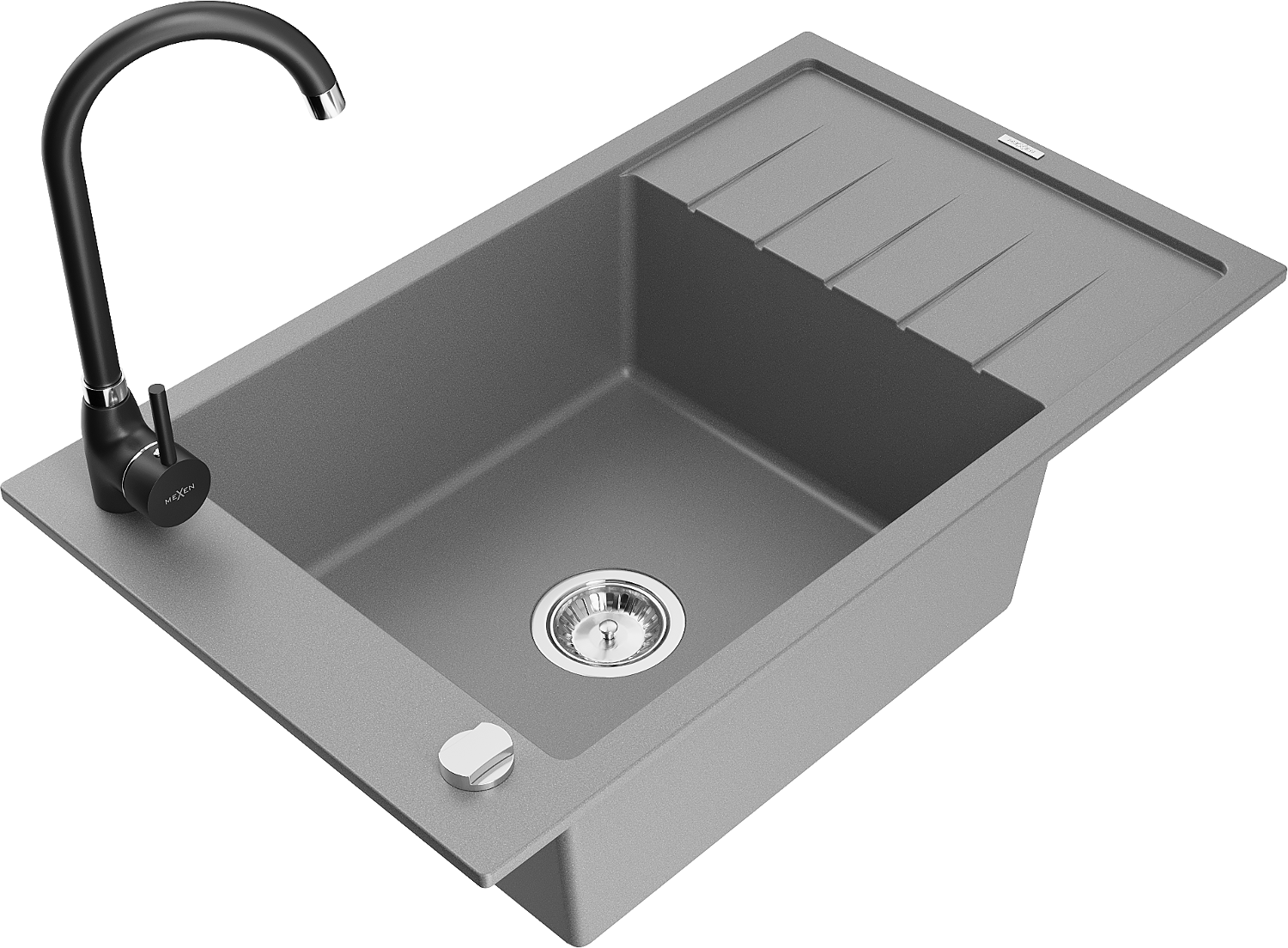 Mexen Elias granitový kuchynský drez s 1 priehradkou a odkvapkávačom a kuchynskou batériou Telma, sivý - 6511-71-670200-70