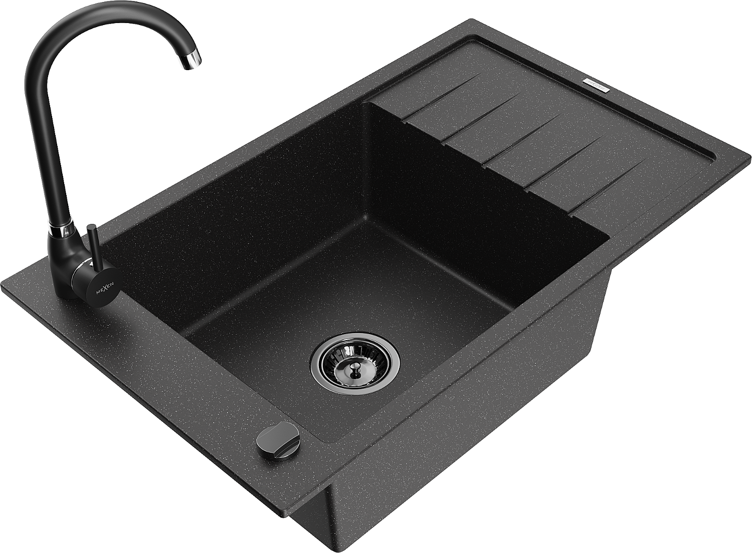 Mexen Elias granitový drez 1-komorový s odkvapkávacou plochou a kuchynskou batériou Telma, čierna/strieborná - 6511-73-670200-7?