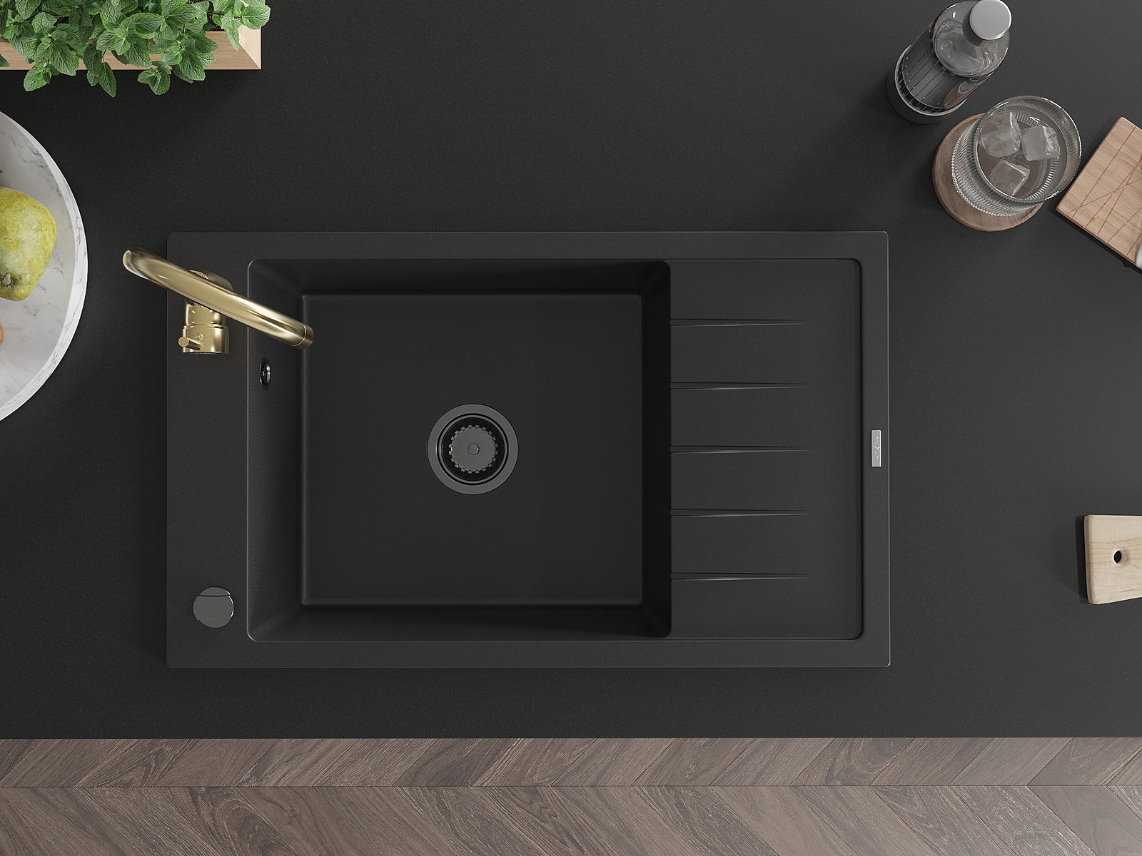 Povrch umývadla je odolný voči škvrnám a sfarbeniu, vďaka čomu sa ľahko čistí a zachováva si svoju farbu po dlhú dobu. Estetický a prakticky dopĺňajúci každú kuchyňu.
