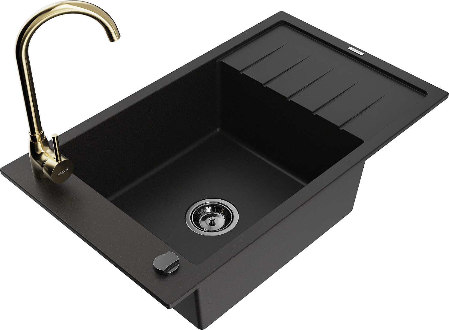Mexen Elias žulový drez 1-komorový s odkvapkávacou plochou a kuchynskou batériou Telma, čierny - 6511-77-670200-50-B