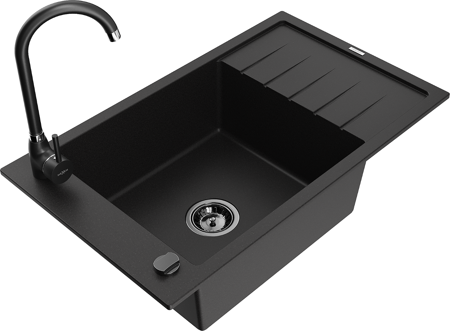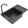 Mexen Elias granitový drez 1-komorový s odkvapkávacou plochou a kuchynskou batériou Telma, čierny - 6511-77-670200-70-B